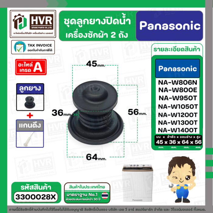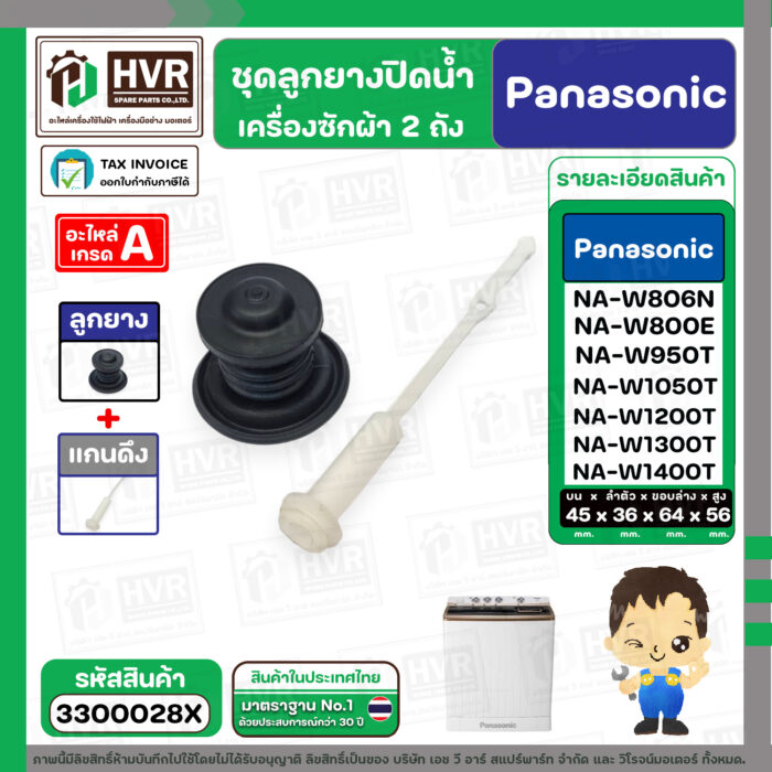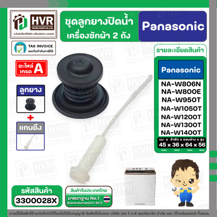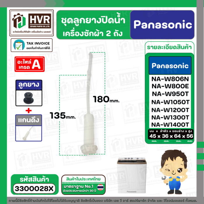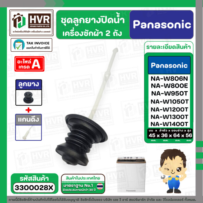 - ชุดลูกยางปิดน้ำทิ้งเครื่องซักผ้า สองถัง Panasonic ( พานาโซนิค ) , National ( ลูกยาง+แกนดึง ) ( แท้ ) #3300028X———————————- >> รายละเอียดสินค้า << —————————————