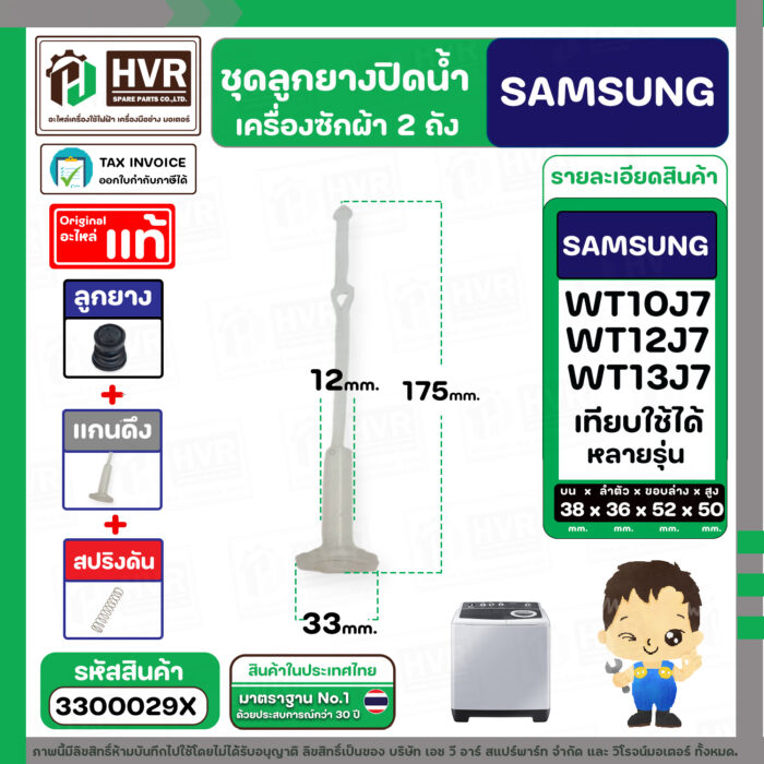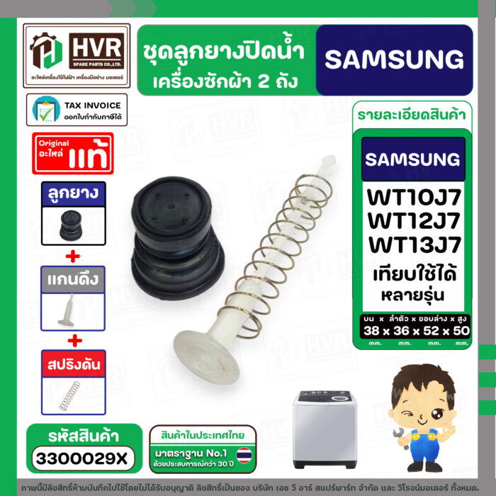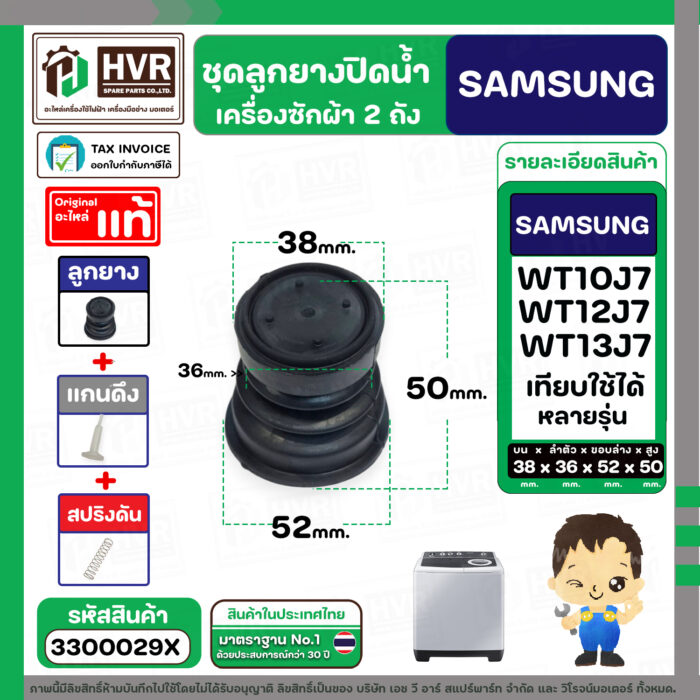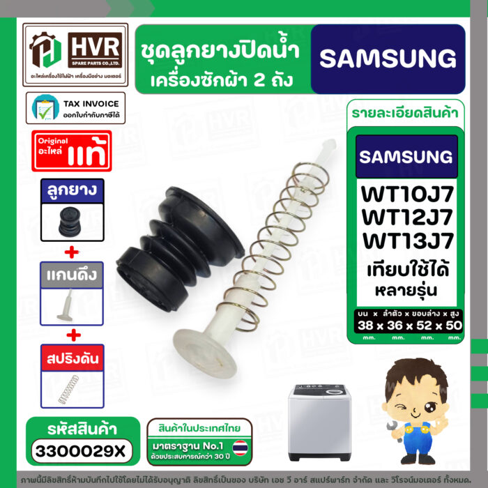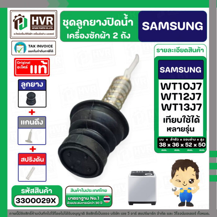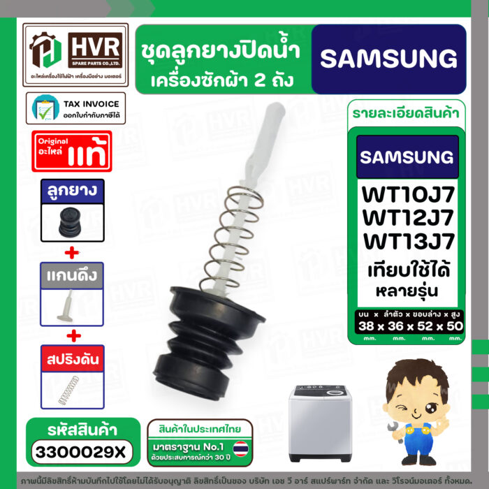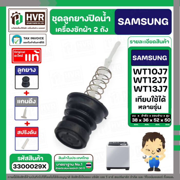 ชุดลูกยางปิดน้ำทิ้งเครื่องซักผ้า SAMSUNG 8 – 10.5 Kg. : WT10J7 , WT12J7 , WT13J7 ใช้ได้หลายรุ่น ( ลูกยาง + แกนดึง + สปริง ) #3300029X