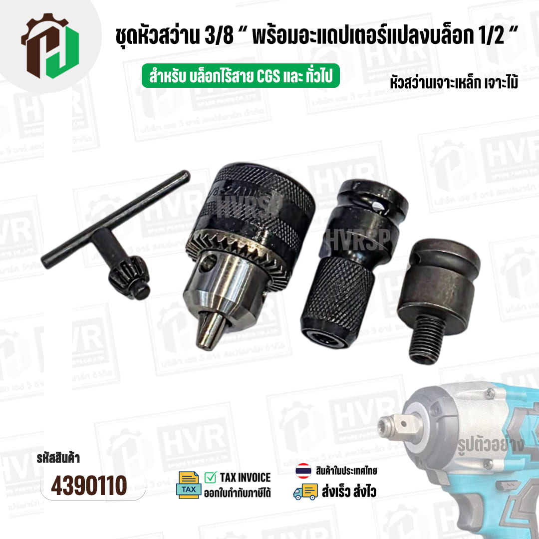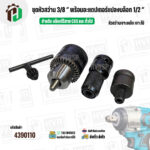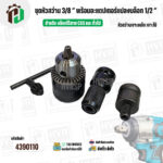 >> หัวสว่านประกอบไปด้วย : หัวสว่าน เจาะเหล็ก 3/8″+ จำปา + อะแดปเตอร์แปลงบล็อก 1/2″เป็น หัวจับดอกสว่าน 3/8″ และ เป็นดอกไขควง 6 เหลี่ยม