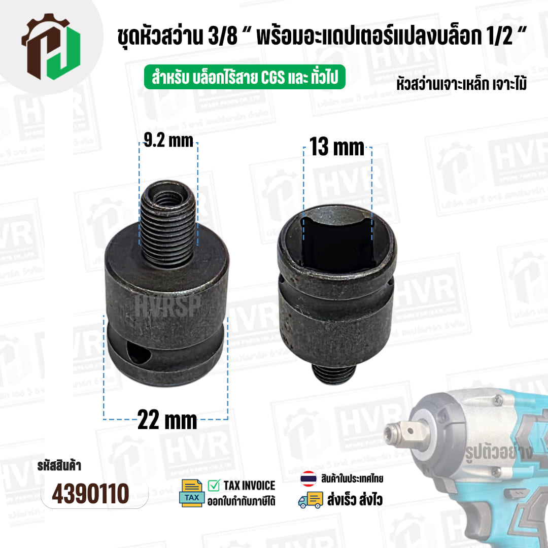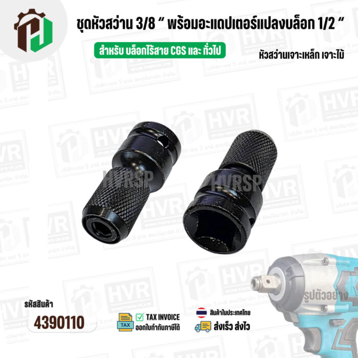 ชุดหัวสว่านเจาะเหล็ก 3/8 ” พร้อมอะแดปเตอร์แปลงบล็อก 1/2″ เป็น หัวจับดอกสว่าน 3/8″ และ เป็นดอกไขควง 6 เหลี่ยม #4390110
