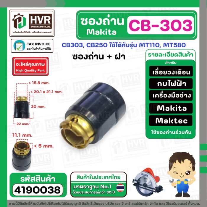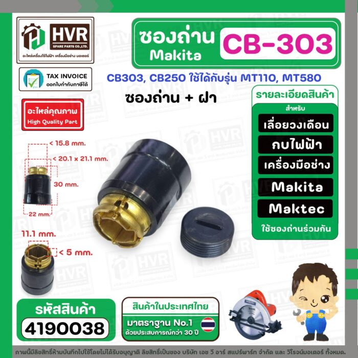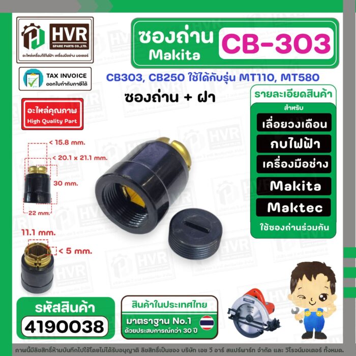 ซองถ่านเครื่องมือช่าง MAKITA CB-303 + ฝา ( CB-303 , CB-250 ) (รูใส่ถ่าน 5 x 11.1 mm. ) ( 1 อัน )