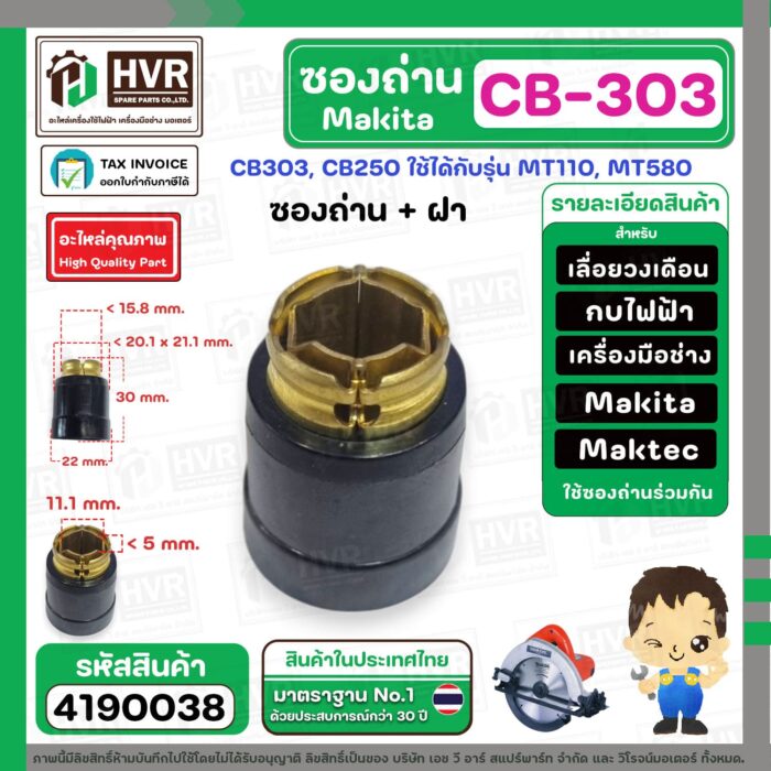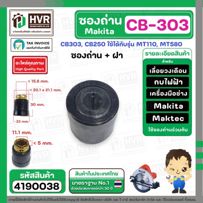 ซองถ่านเครื่องมือช่าง MAKITA CB-303 + ฝา ( CB-303 , CB-250 ) (รูใส่ถ่าน 5 x 11.1 mm. ) ( 1 อัน ) #4190038