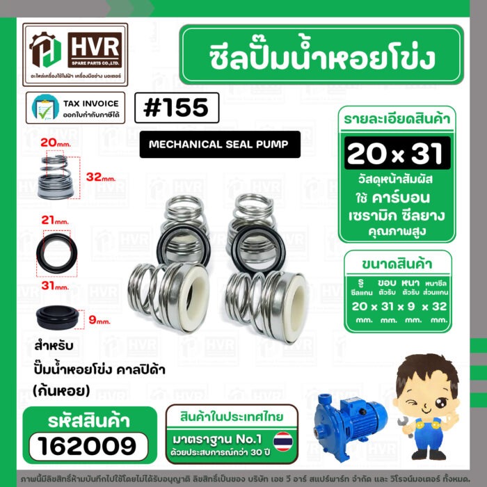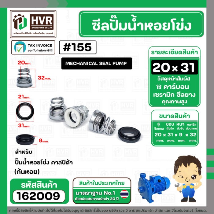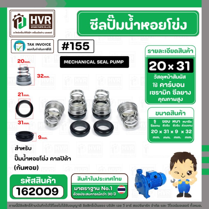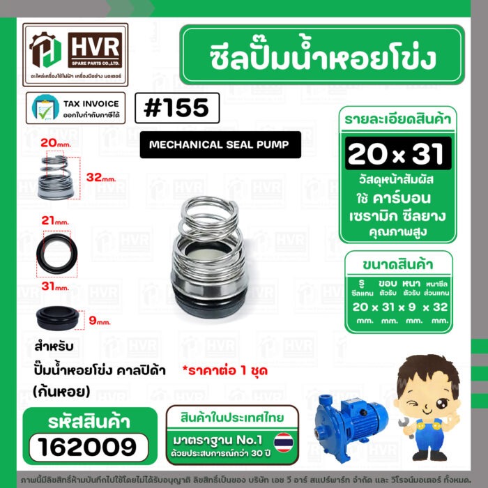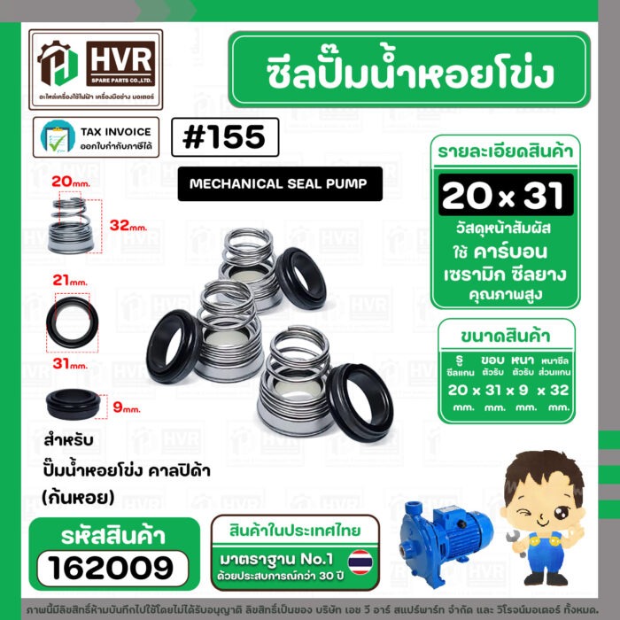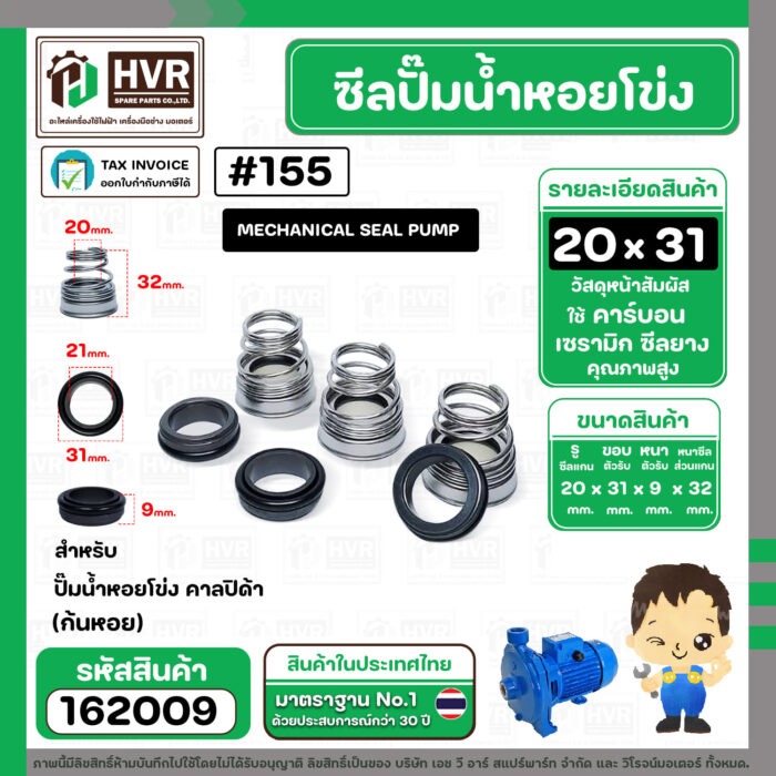 ซีลปั้มน้ำหอยโข่ง คาลปีด้า ( ก้นหอย ) #20 x 31 mm. ( แมคคานิคอล ซีล) #155 (ราคา / 1 ชุด) #162009