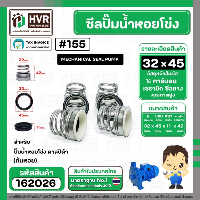 ซีลปั้มน้ำหอยโข่ง คาลปีด้า ( ก้นหอย ) #32 x 45 mm. ( แมคคานิคอล ซีล) #155 (ราคา / 1 ชุด) #162026