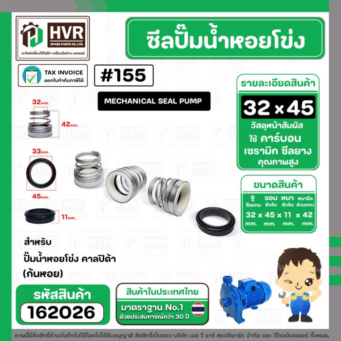 >> ขนาดซีล แกนเพลาปั๊มน้ำ 32 mm. x ขอบบางซีลคาร์บอน 45 mm. ( ตัวรับติดกับหน้าแปลนเรือนปั๊มน้ำ )
