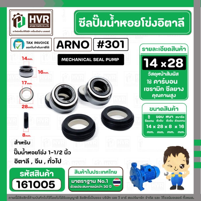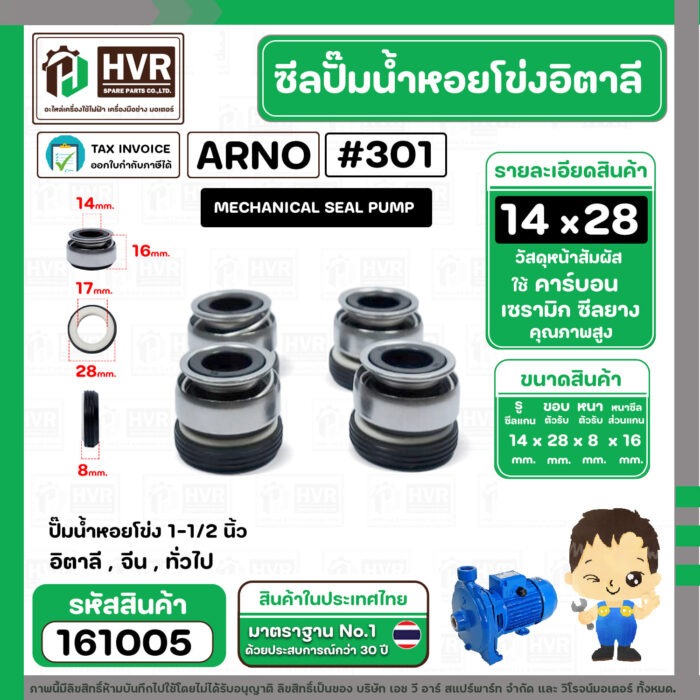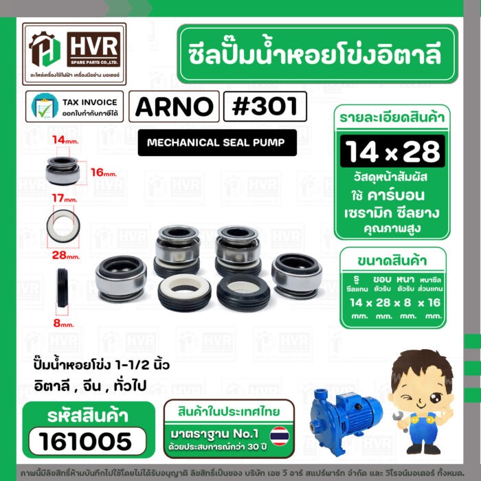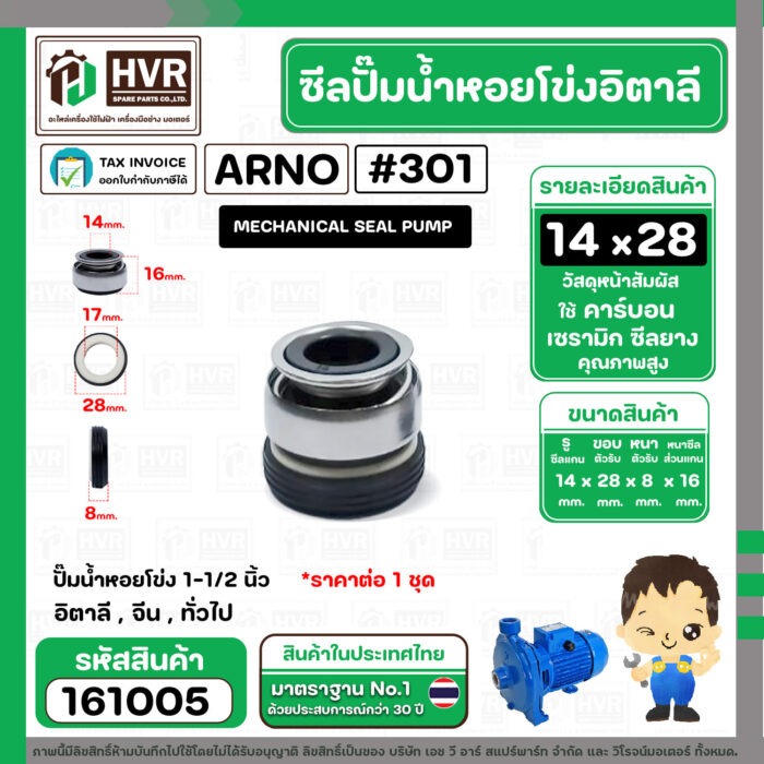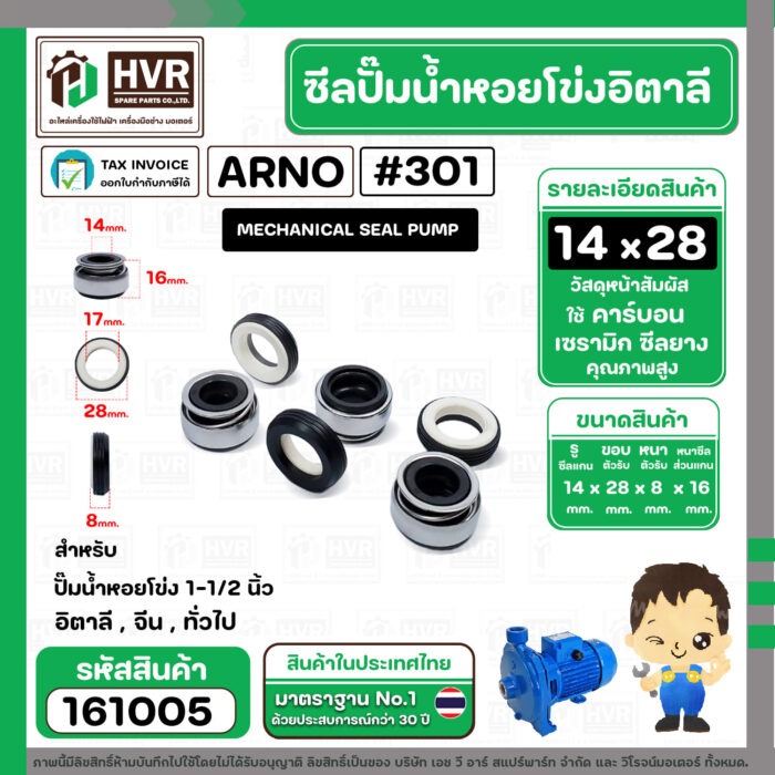 ซีลปั้มน้ำหอยโข่ง 1-1/2 นิ้ว อิตาลี ( ARNO ) #14 x 28 mm. ( แมคคานิคอล ซีล) #301 ( ราคา / 1 ชุด ) #161005