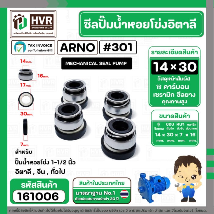 ซีลปั้มน้ำหอยโข่ง 1-1/2 นิ้ว อิตาลี ( ARNO ) #14 x 30 mm. ( แมคคานิคอล ซีล) #301 ( ราคา / 1 ชุด ) #161006