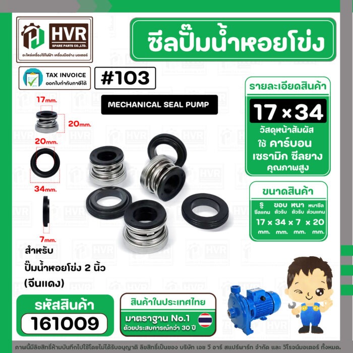 ซีลปั้มน้ำหอยโข่ง 2 นิ้ว ( จีนแดง ) #17 x 34 mm. ( แมคคานิคอล ซีล) #103 #SM104 (ราคา / 1 ชุด) #161009