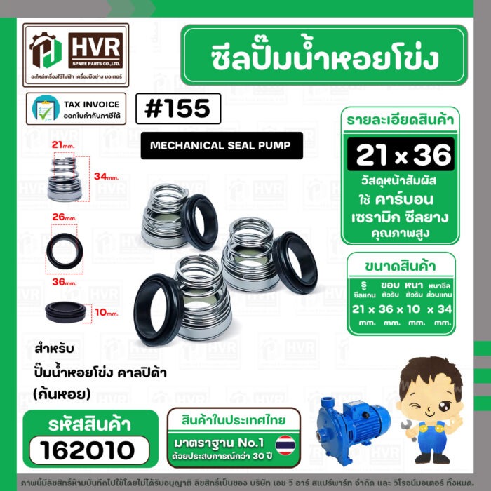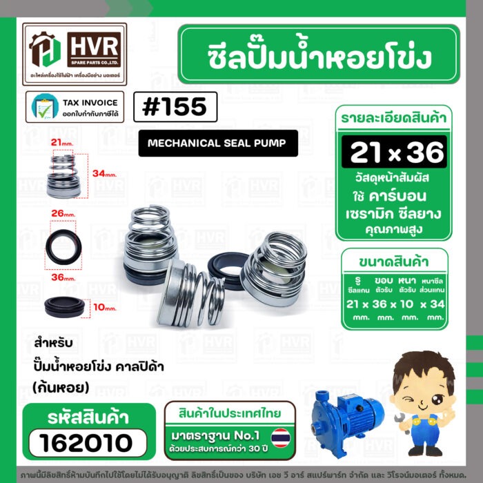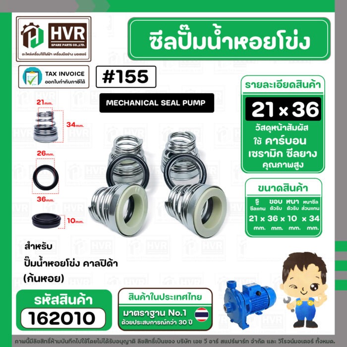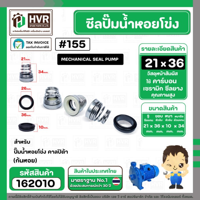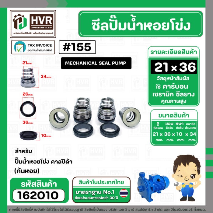 ซีลปั๊มน้ำหอยโข่ง คาลปีด้า ( ก้นหอย ) #21 x 36 mm. ( แมคคานิคอล ซีล) #155 (ราคา / 1 ชุด) #162010