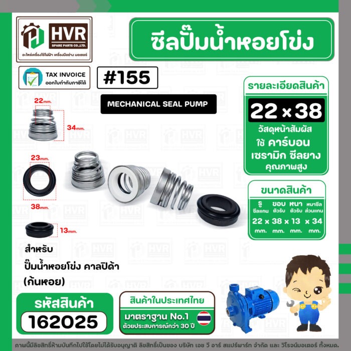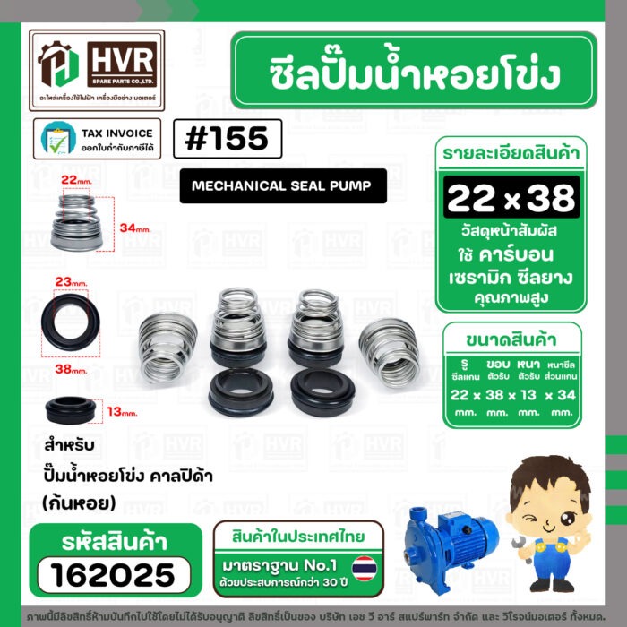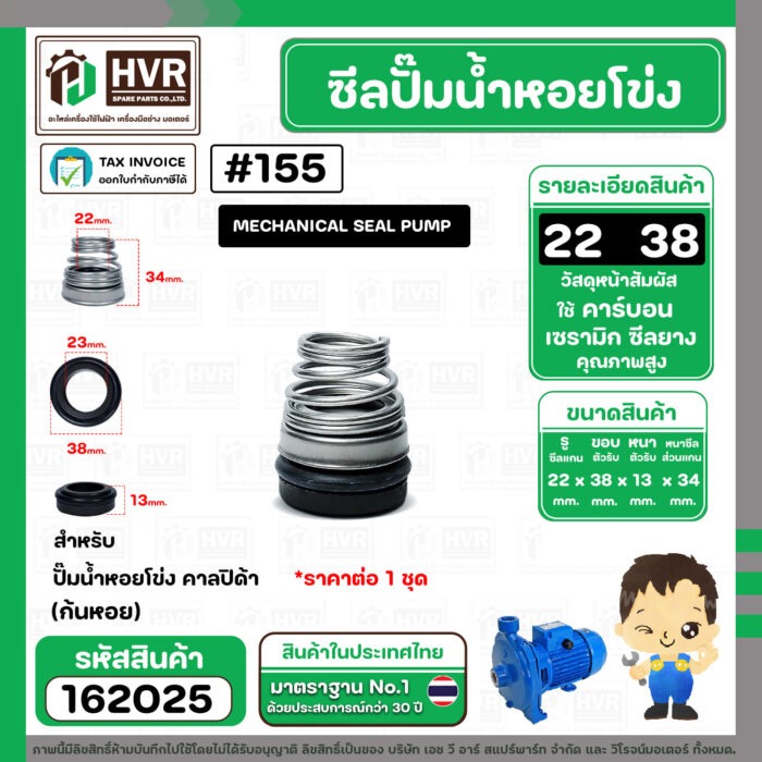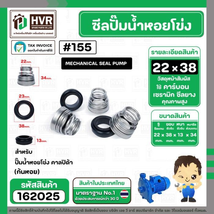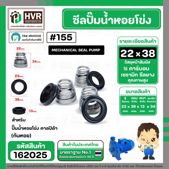 ซีลปั๊มน้ำหอยโข่ง คาลปีด้า ( ก้นหอย ) #22 x 38 mm. ( แมคคานิคอล ซีล) #155 (ราคา / 1 ชุด) #162025
