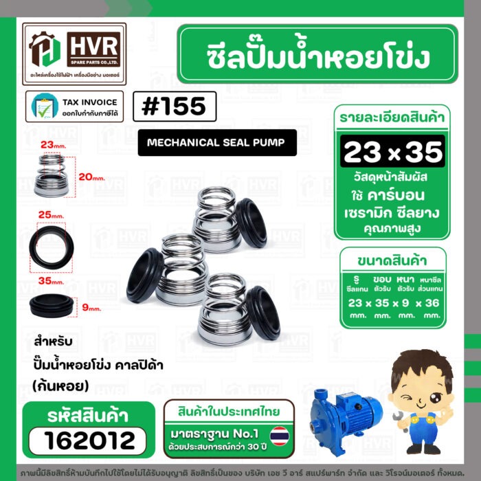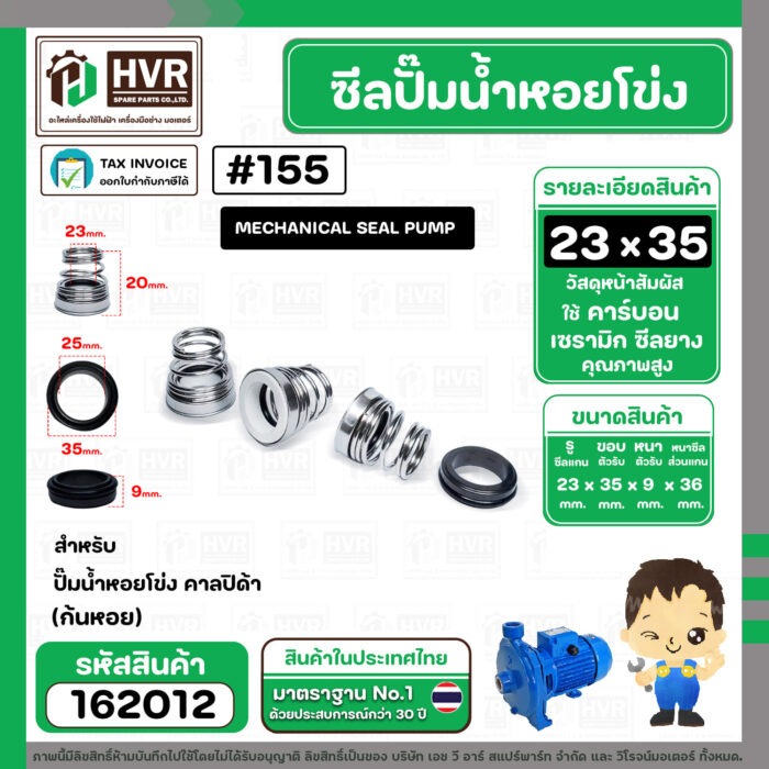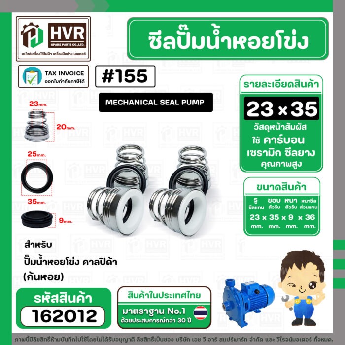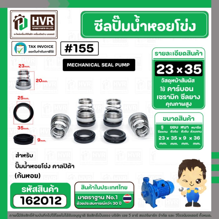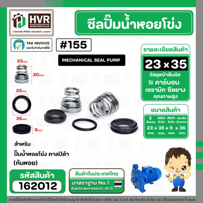 ซีลปั๊มน้ำหอยโข่ง คาลปีด้า ( ก้นหอย ) #23 x 35 mm. ( แมคคานิคอล ซีล) #155 (ราคา / 1 ชุด) #162012