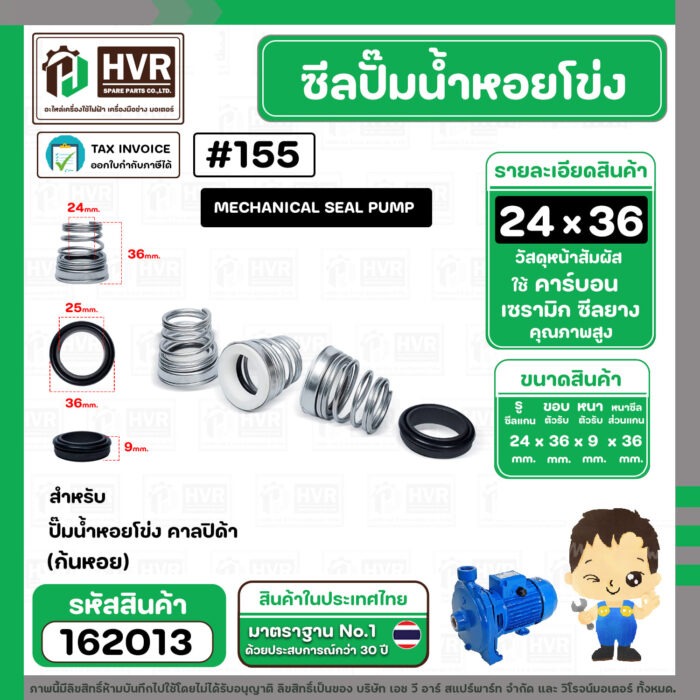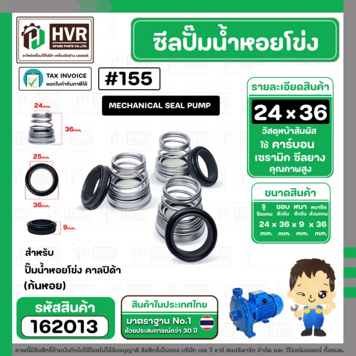 ซีลปั๊มน้ำหอยโข่ง คาลปีด้า ( ก้นหอย ) #24 x 36 mm. ( แมคคานิคอล ซีล) #155 (ราคา / 1 ชุด) #162013