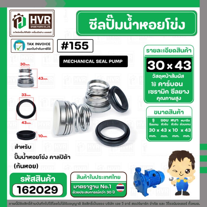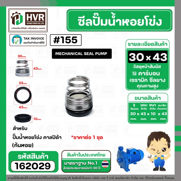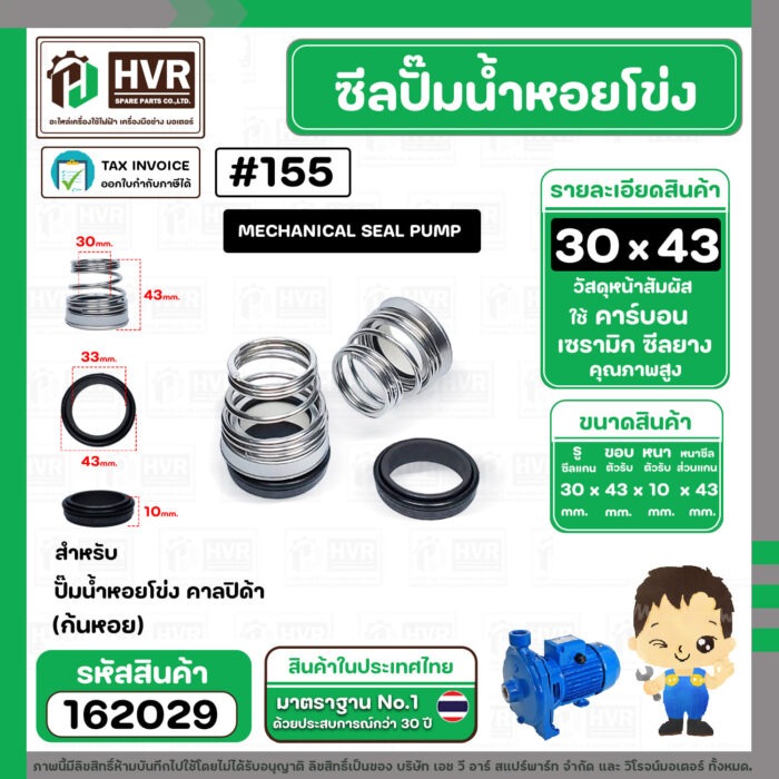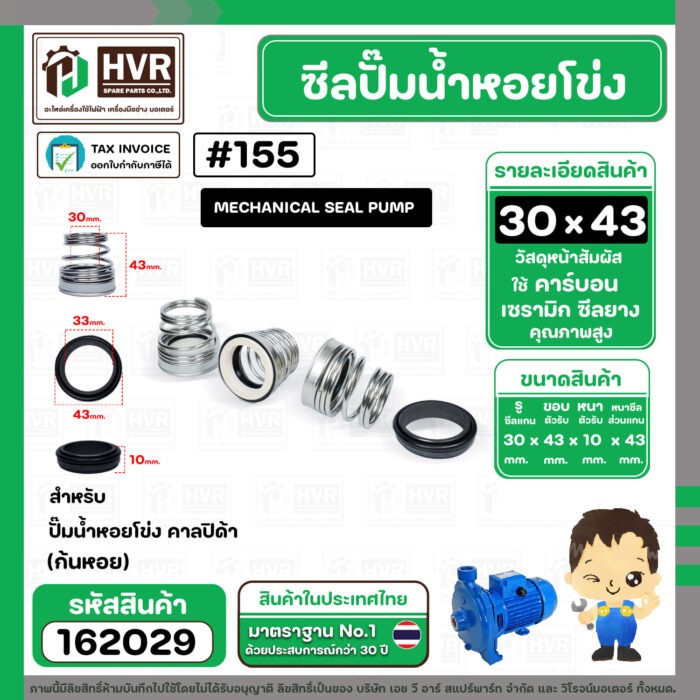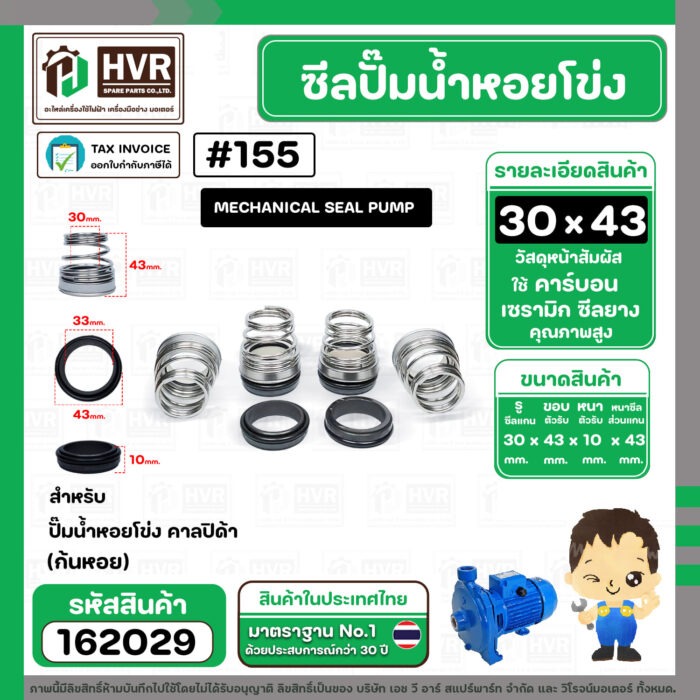 ซีลปั๊มน้ำหอยโข่ง คาลปีด้า ( ก้นหอย ) #30 x 43 mm. ( แมคคานิคอล ซีล) #155 (ราคา / 1 ชุด) #162029