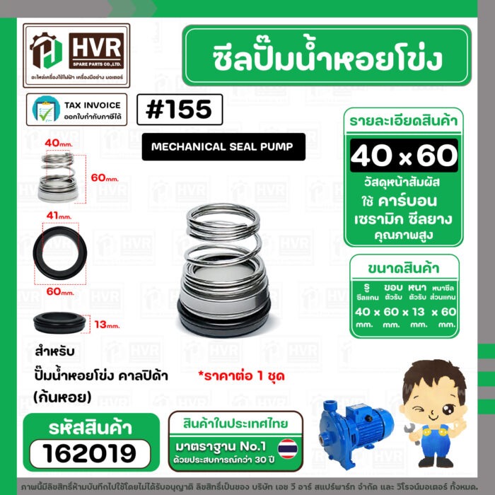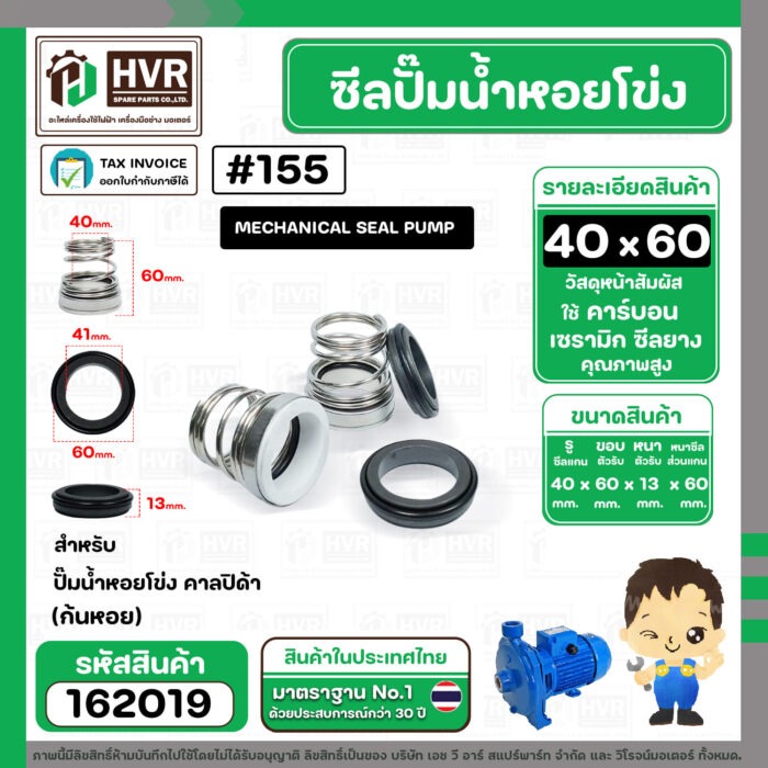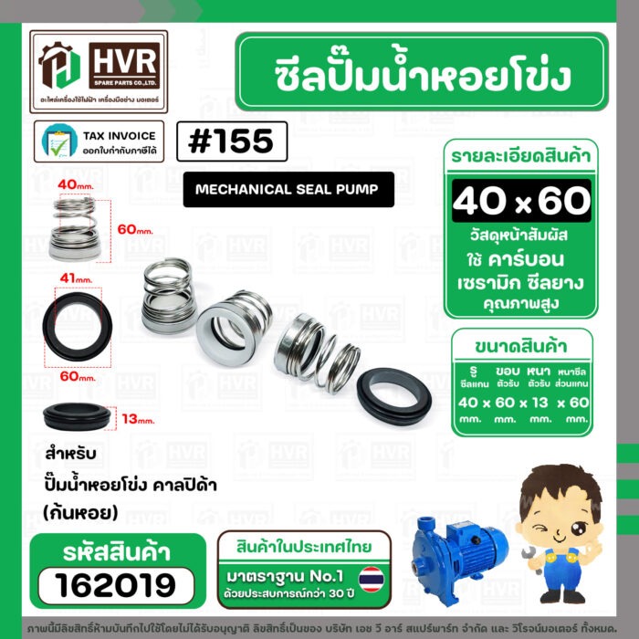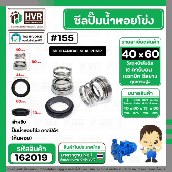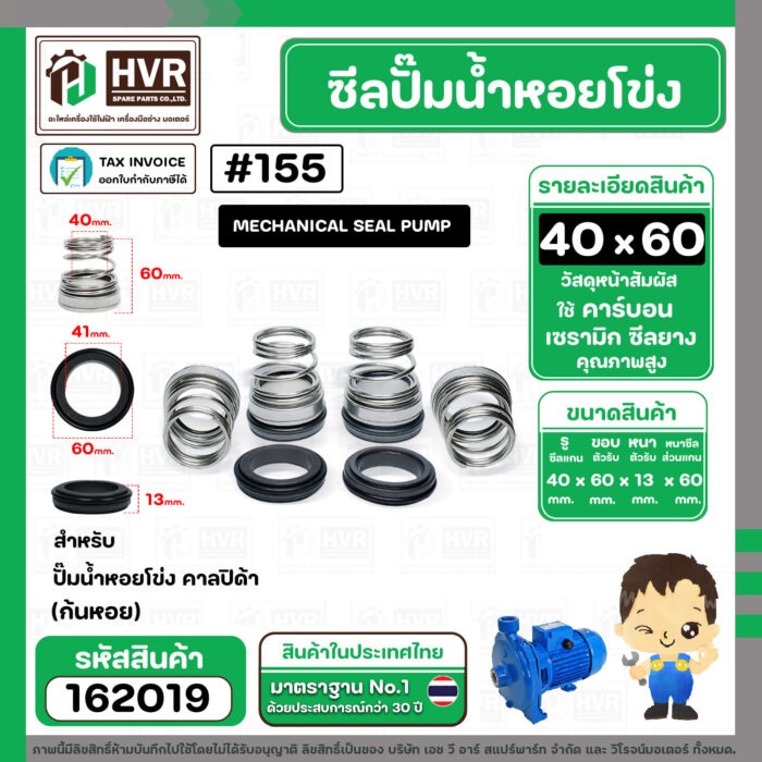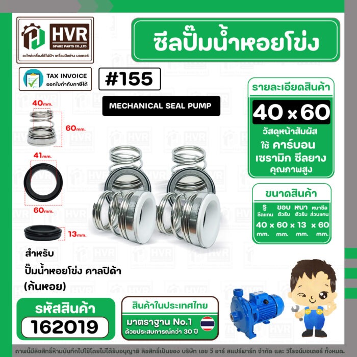 ซีลปั๊มน้ำหอยโข่ง คาลปีด้า ( ก้นหอย ) #40 x 60 mm. ( แมคคานิคอล ซีล) #155 (ราคา / 1 ชุด) #162019