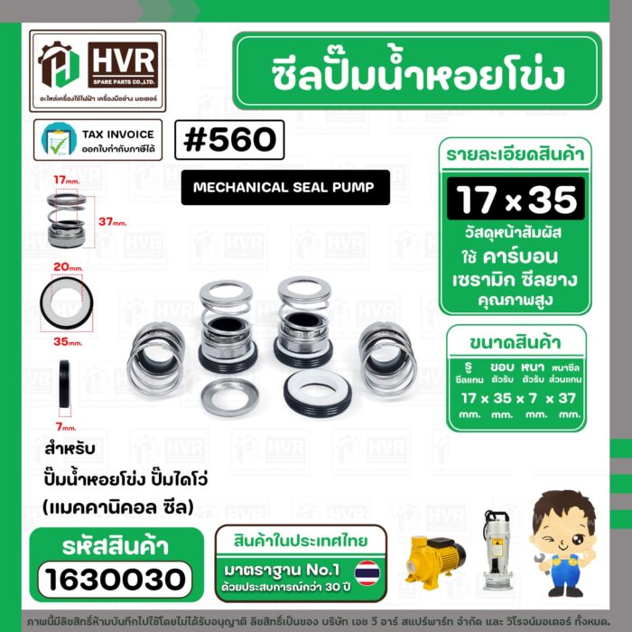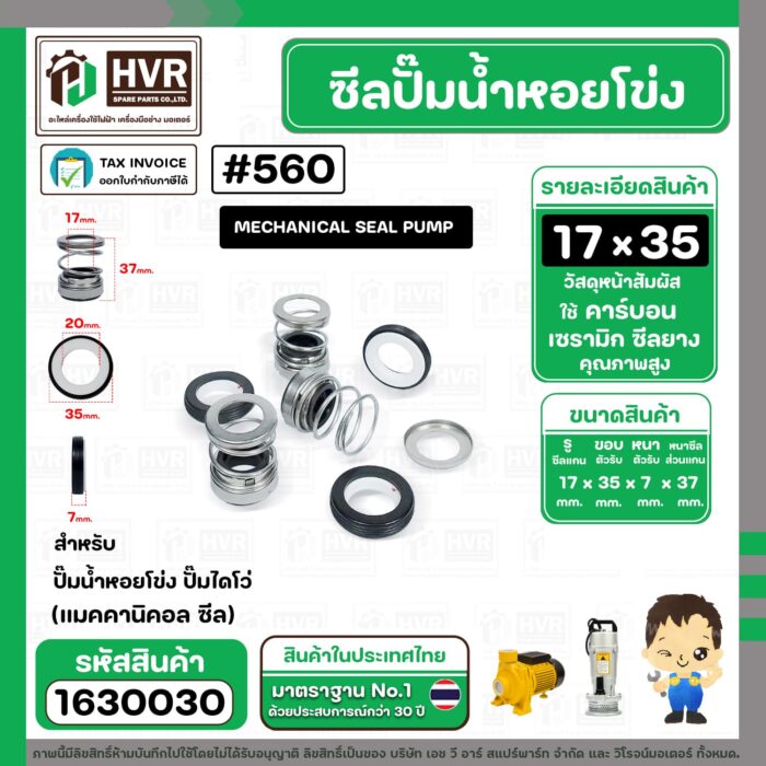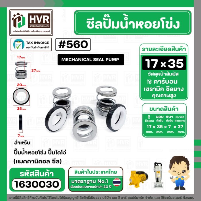 ซีลปั๊มน้ำหอยโข่ง ไดโว่ #17 x 35 mm.x 1 หน้า ( แมคคานิคอล ซีล) #560 ( 1 ตัว ) #1630030