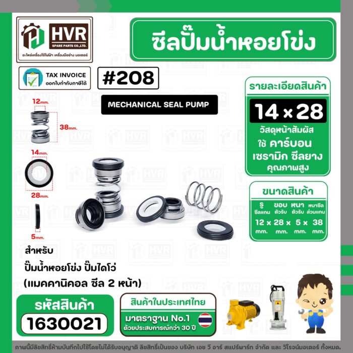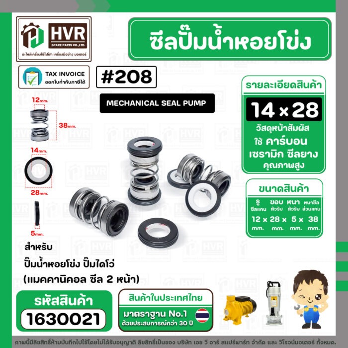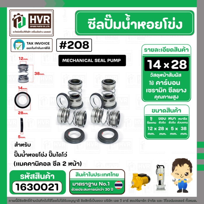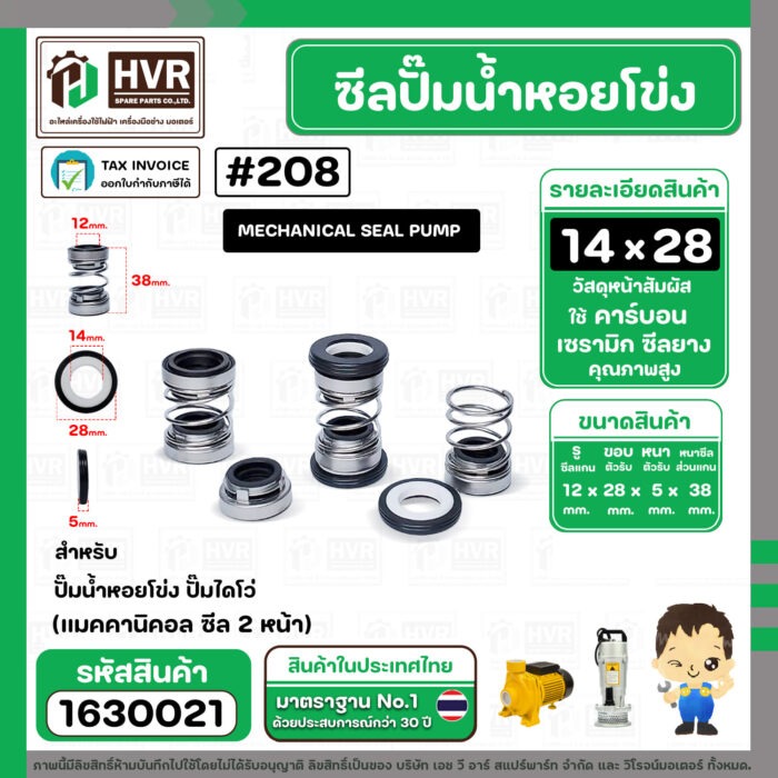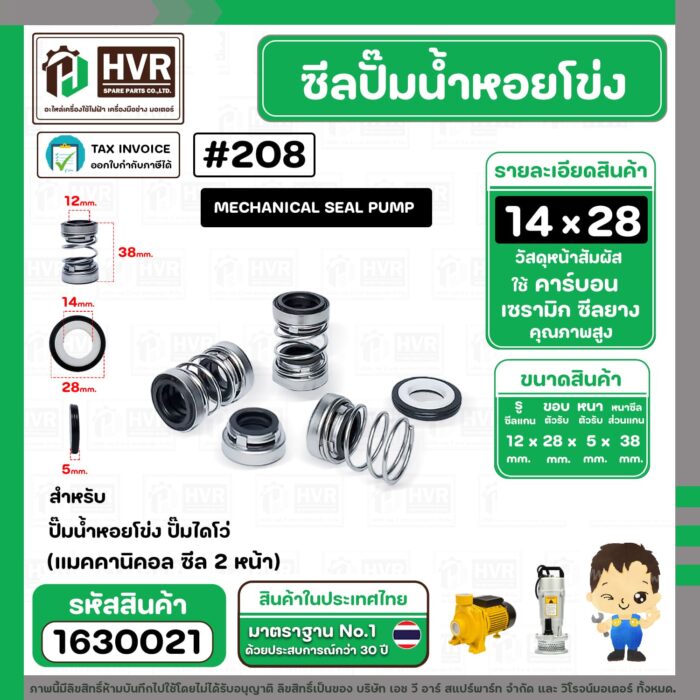 ซีลปั๊มน้ำหอยโข่ง ไดโว่ #14 x 28 mm. x 2 หน้า ( แมคคานิคอล ซีล) #208 ( 1 ตัว ) #1630021