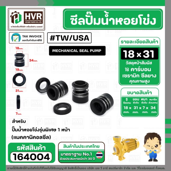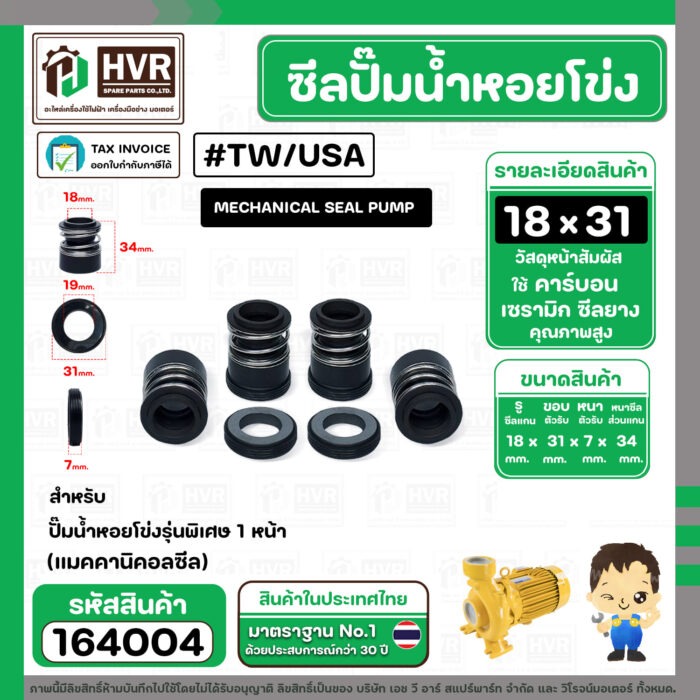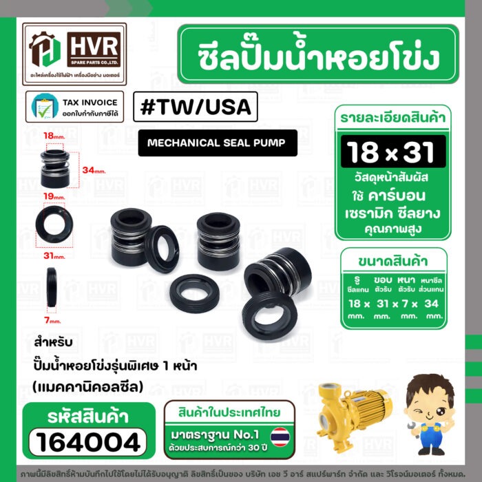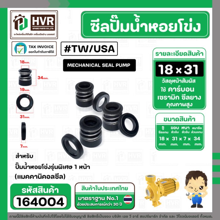 ซีลปั๊มน้ำหอยโข่ง TAIWAN,USA ขนาด 18 x 31 mm. 1 หน้า รุ่นพิเศษ ( แมคคานิคอล ซีล) #mechanical seal pump #164004