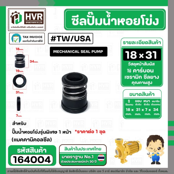 ซีลปั๊มน้ำหอยโข่ง TAIWAN,USA ขนาด 18 x 31 mm. 1 หน้า รุ่นพิเศษ ( แมคคานิคอล ซีล) ( 1 ตัว ) #164004