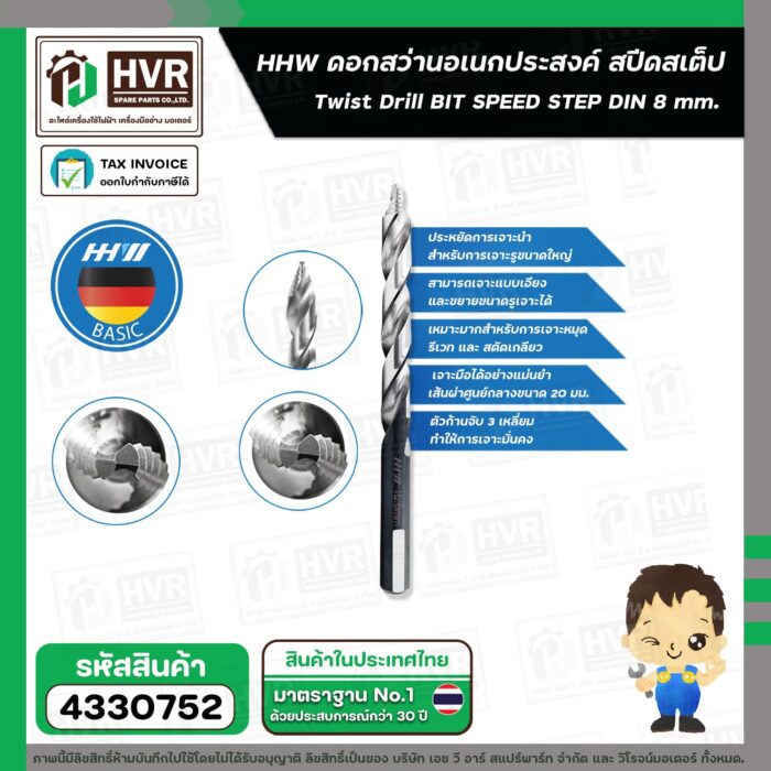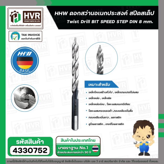 ดอกสว่านอเนกประสงค์ สปีดสเต็ป 8 mm. ( HHW ) #10.101261