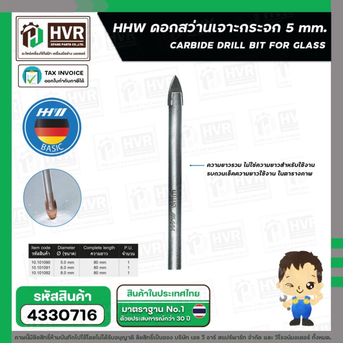 ดอกสว่านเจาะกระจก 5 mm.( แกนกลม ) ( HHW ) #10.101090 #4330716