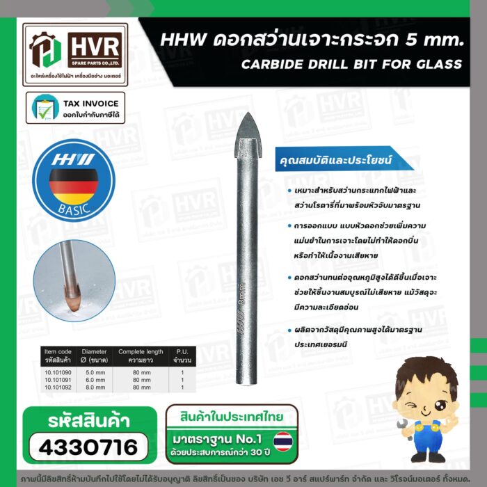 มาเป็นคนแรกที่วิจารณ์ “ดอกสว่านเจาะกระจก 5 mm.( แกนกลม ) ( HHW ) #10.101090 #4330716”