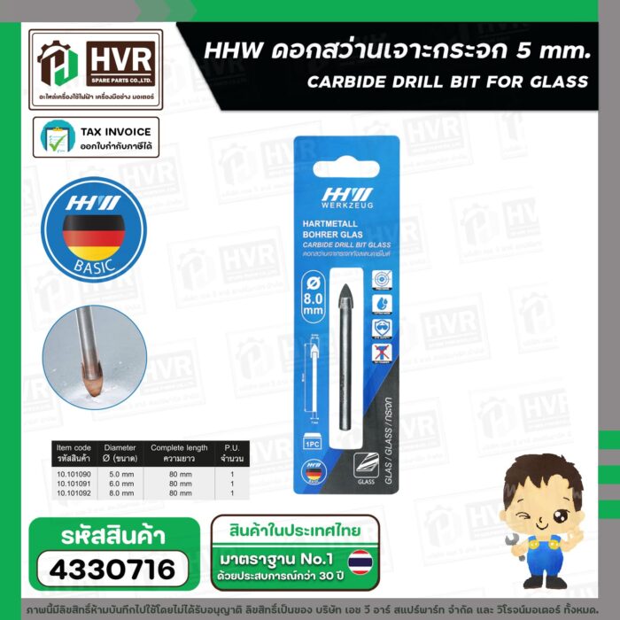 HHW ดอกสว่านคาร์ไบด์สำหรับกระจก / CARBIDE DRILL BIT FOR GLASS