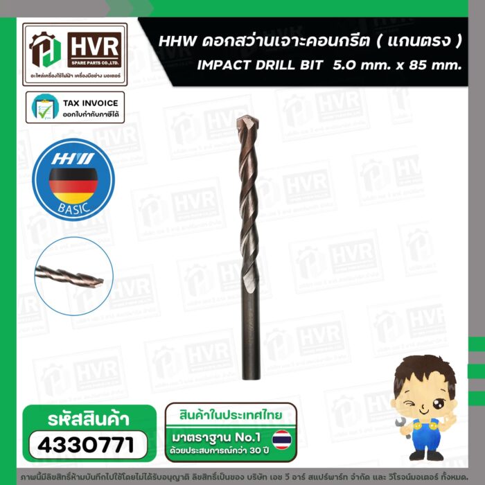 ดอกสว่านเจาะปูน ( แกนตรง ) 5.0 mm. x 85 mm. ( HHW ) #10.100087 #4330771