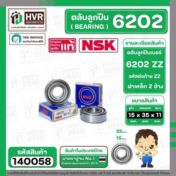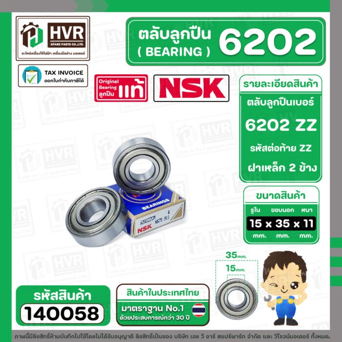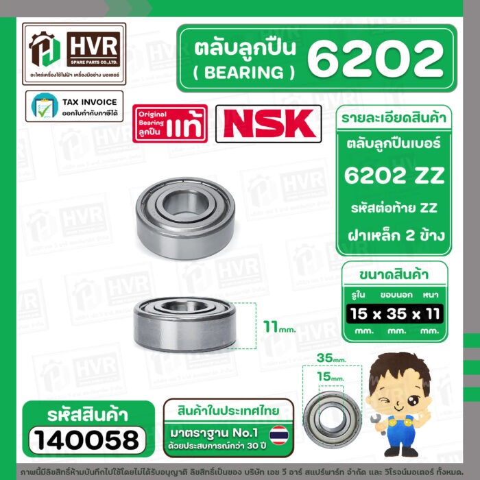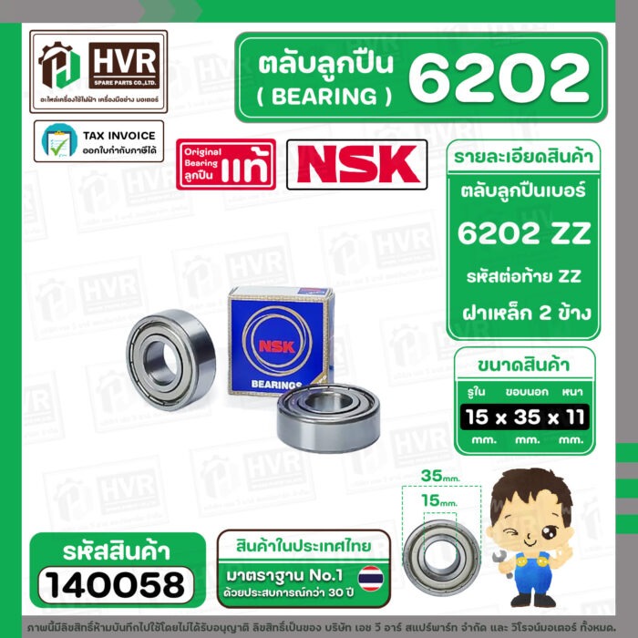 #ตลับลูกปืนเบอร์6202ZZ #ลูกปืน6202ZZ #ลูกปืน6202ZZ #ลูกปืนยี่ห้อNSK6202ZZ #Bearing6202ZZ