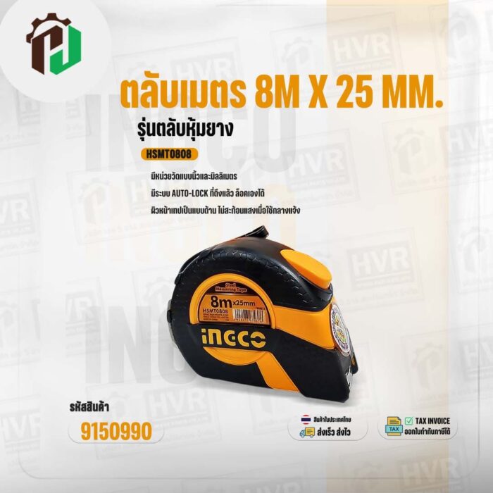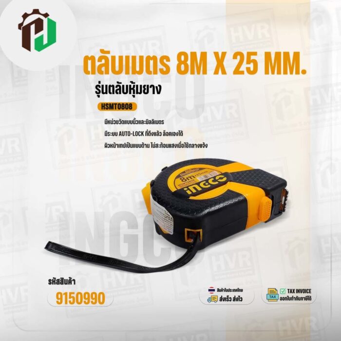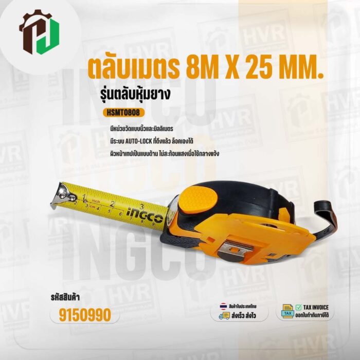 ตลับเมตร 8M x 25 mm. ( INGCO ) NO.HSMT0808 #9150990