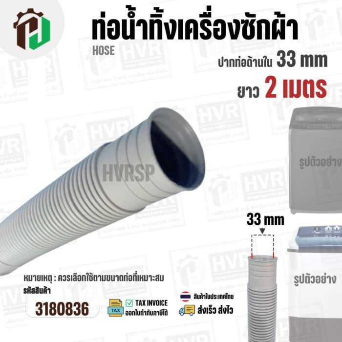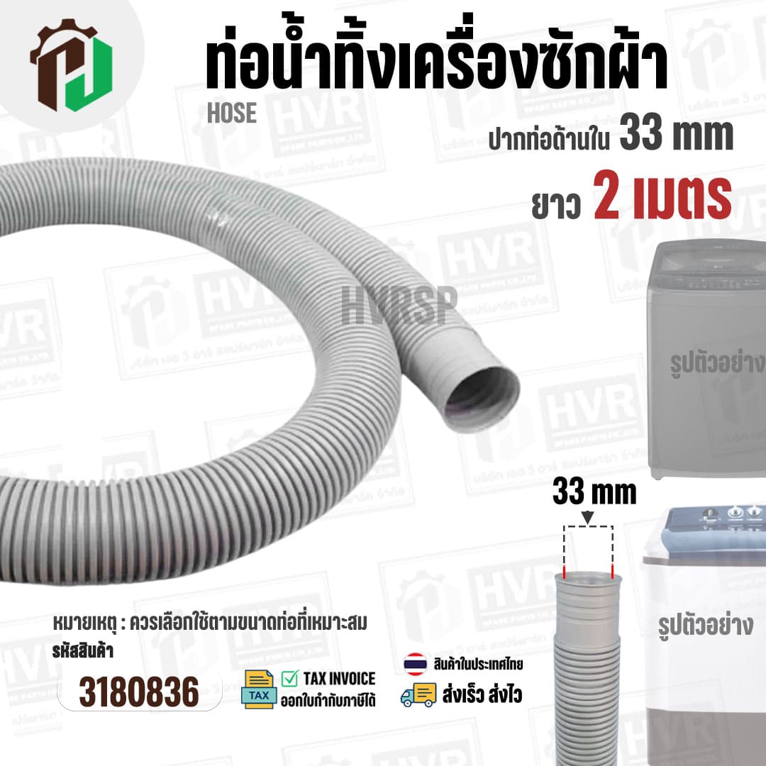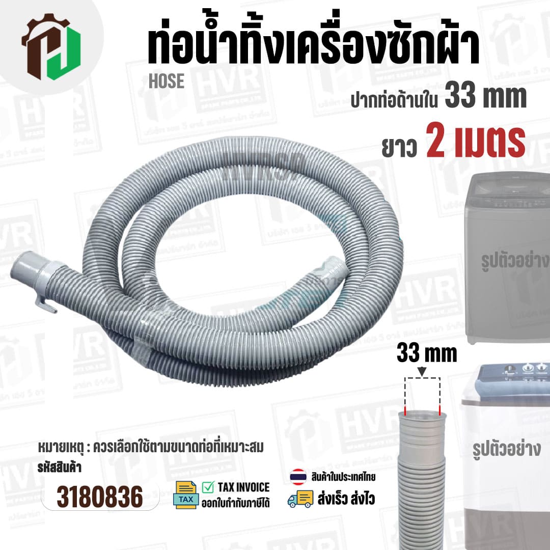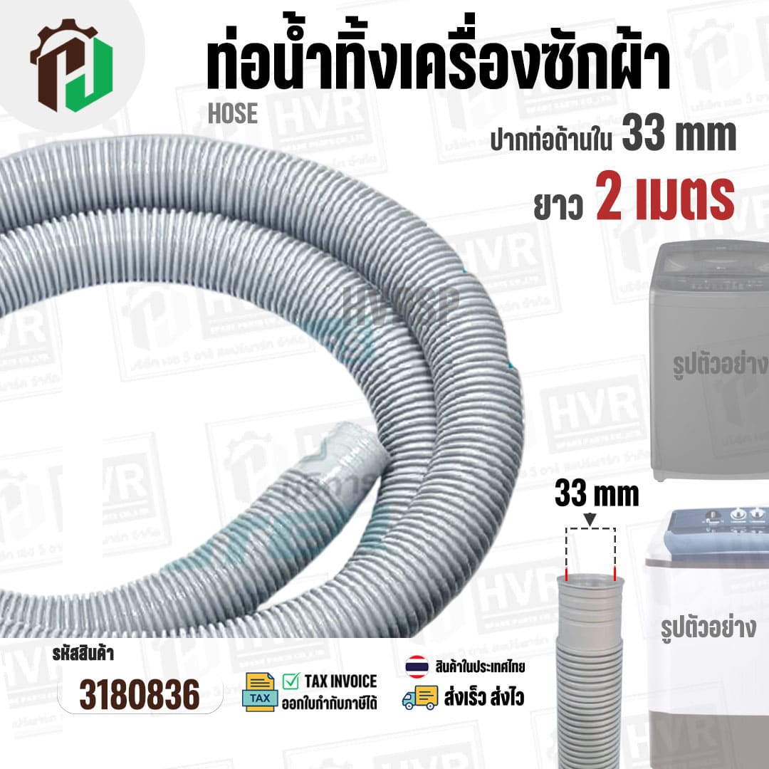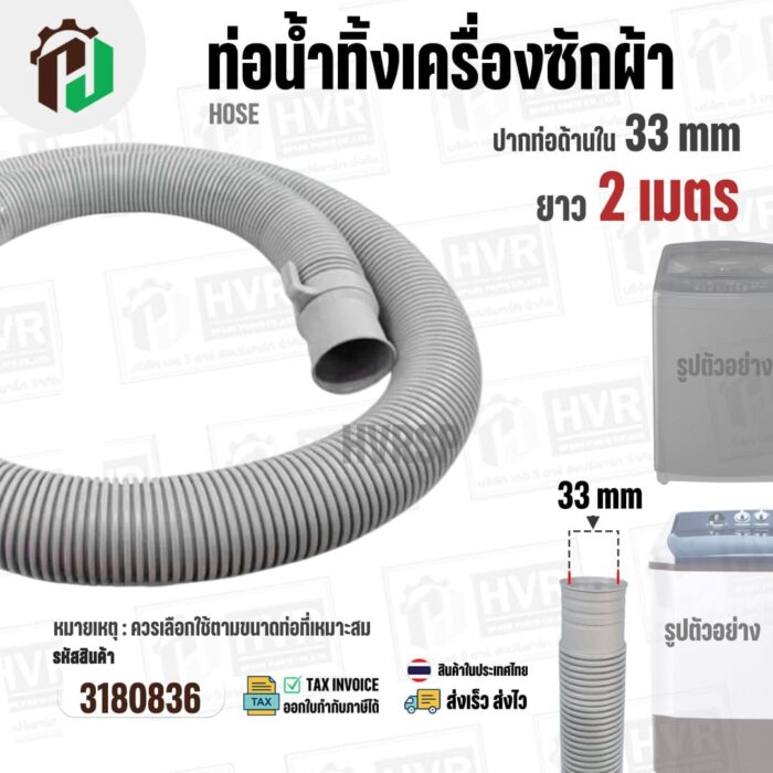 ท่อน้ำทิ้งเครื่องซักผ้าสองถังและถังเดี่ยวอัตโนมัติ ปากท่อด้านใน 3.3 cm. ยาว 2 เมตร ไซส์มาตราฐานเครื่องซักผ้าทั่วไป #3180836
