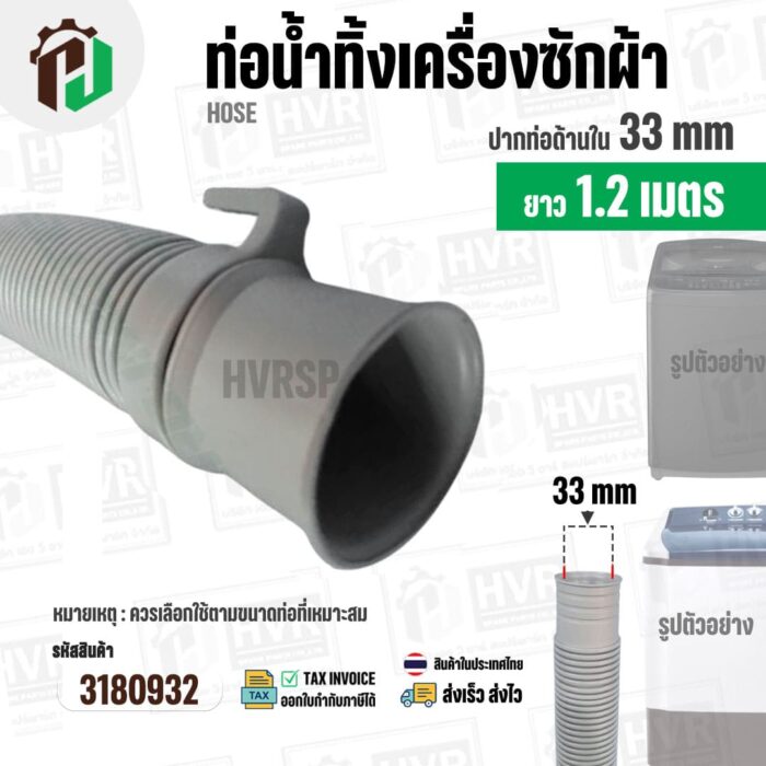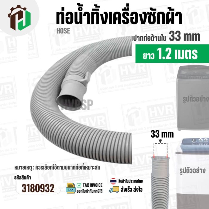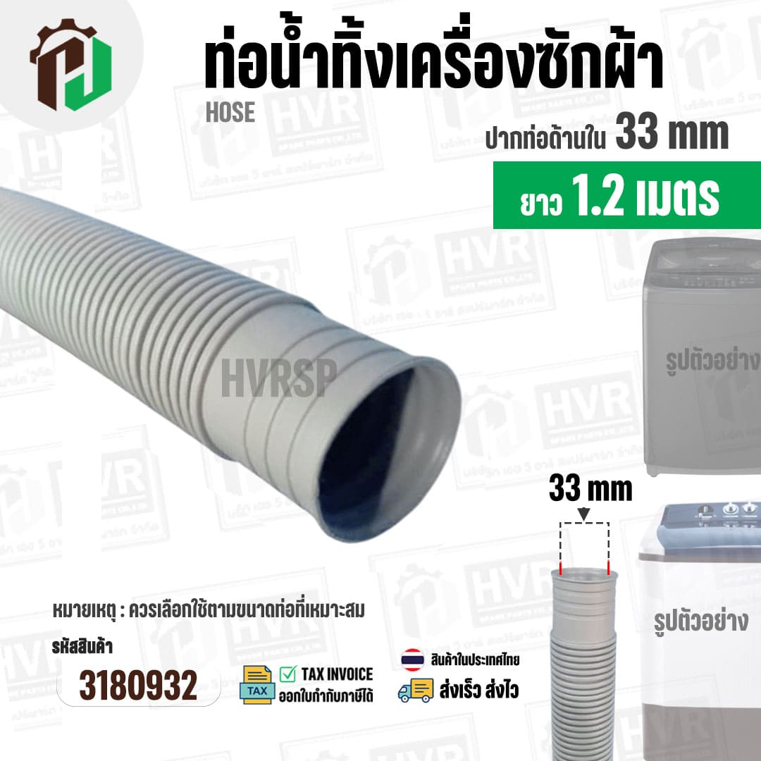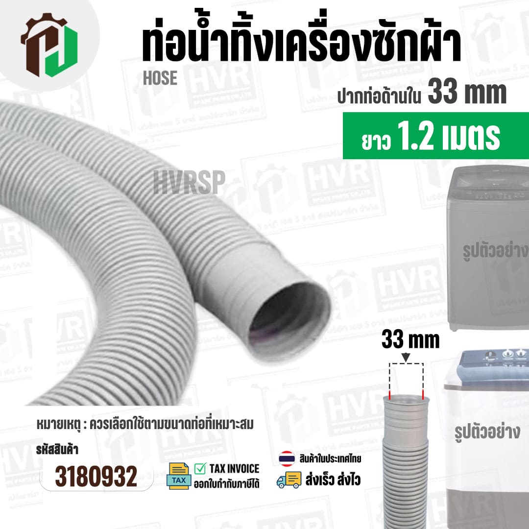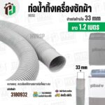 ท่อน้ำทิ้งเครื่องซักผ้าสองถังและถังเดี่ยวอัตโนมัติ ปากท่อด้านใน 3.3 cm. ยาว 1.2 เมตร ไซส์มาตราฐานเครื่องซักผ้าทั่วไป #3180932