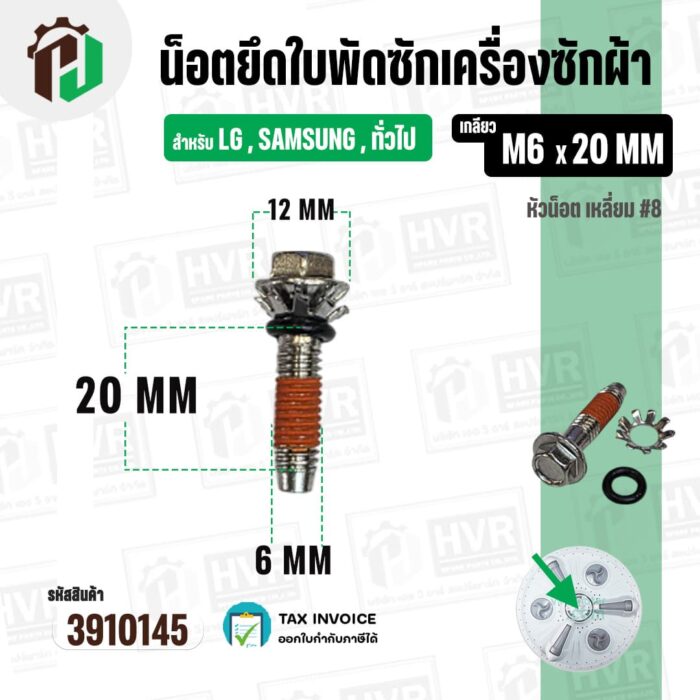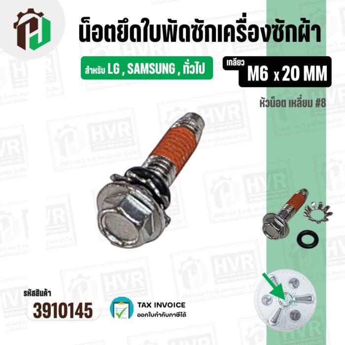 #น๊อตยึดใบพัด #น๊อตยึดใบพัดเครื่องซักผ้า #น๊อตM6 #น๊อตเครื่องซักผ้า #น็อตยึดใบพัดเครื่องซักผ้าLG