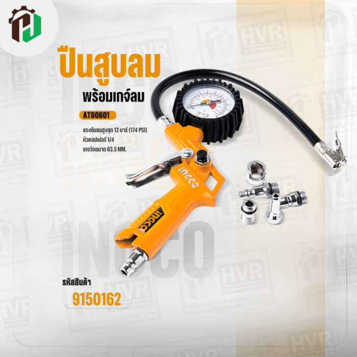 รายละเอียดสินค้า : INGCO ที่เติมลมยาง สายอ่อน พร้อมเกจ์วัด รุ่น ATG0601 ( Air Tire Inating Gun ) – เกจวัดลม ที่เติมลม