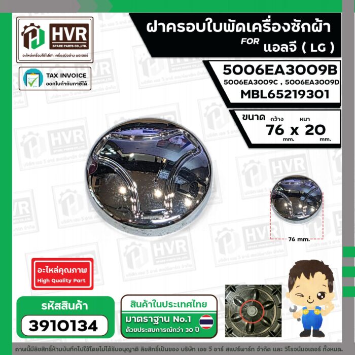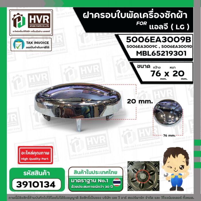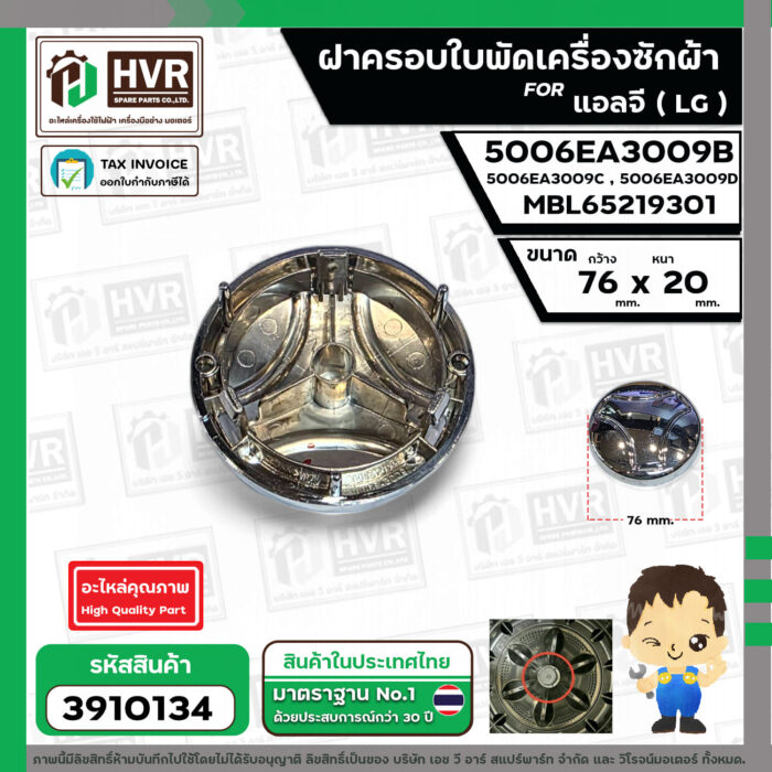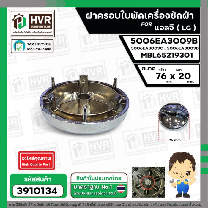 มาเป็นคนแรกที่วิจารณ์ “ฝาครอบใบพัดเครื่องซักผ้า LG ถังเดี่ยวเปิดบน ( 76 x 20 mm.) เทียบใช้ได้หลายรุ่น #3910134”