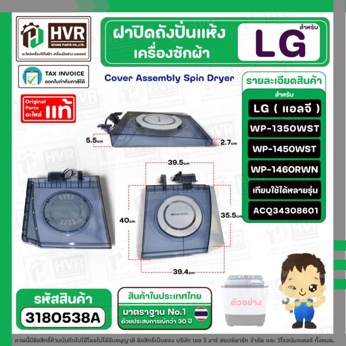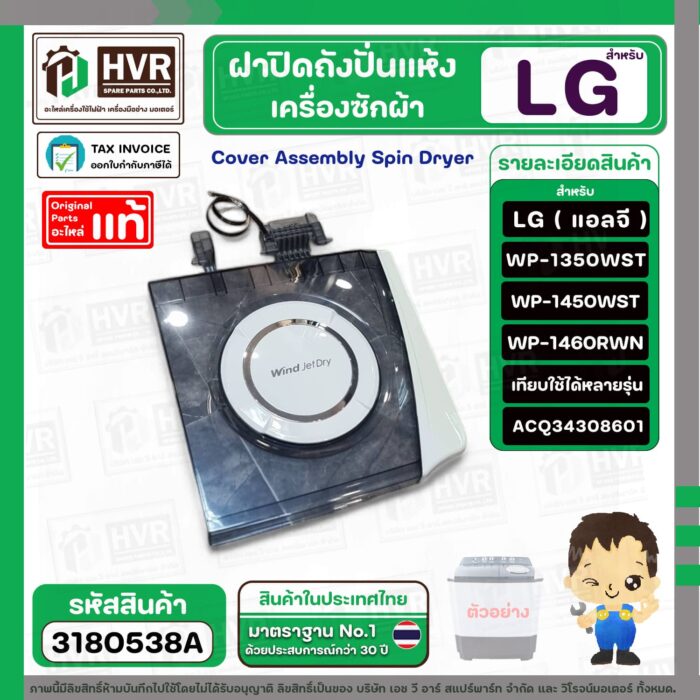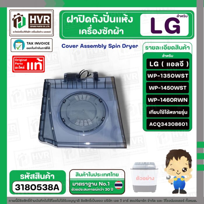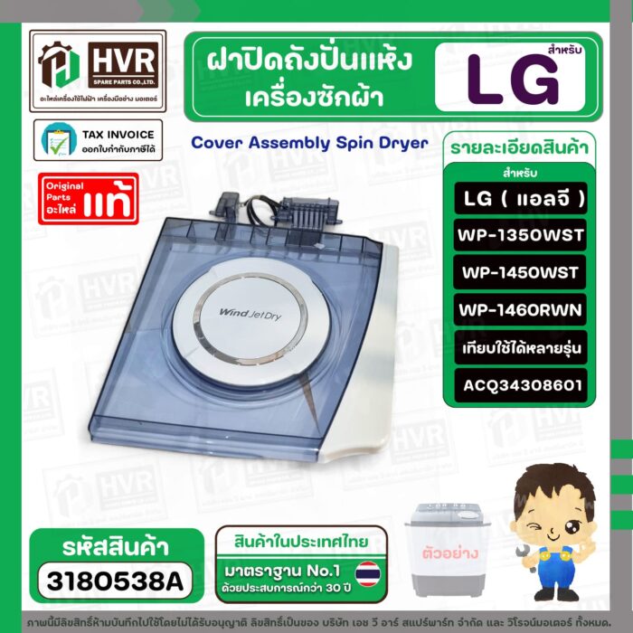 ฝาปิดถังปั่นแห้ง LG รุ่น WP1350WST , WP1450 WST , WP1460R ( ACQ34308601 ) ( Cover Assembly Spin Dryer ) #3180538A