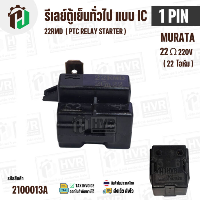 รีเลย์ตู้เย็น แบบ IC 1 ขา ( 1 PIN ) Murata 22 Ω 220V 22RMD / ( PTC RELAY STARTER )