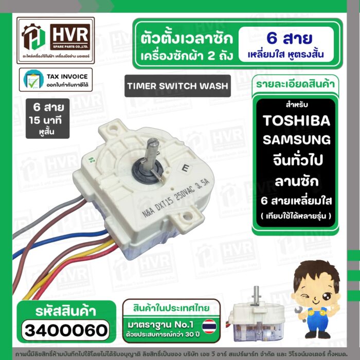 ลานซักเครื่องซักผ้า SAMSUNG , TOSHIBA , HAIER , จีน ( 6 สายเหลี่ยมใส่ แกน 90 องศา ) #DXT15 หูตรง #3400060
