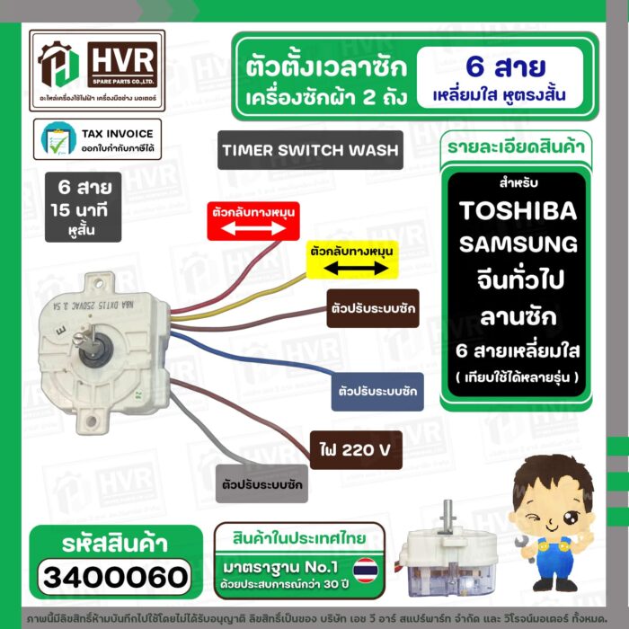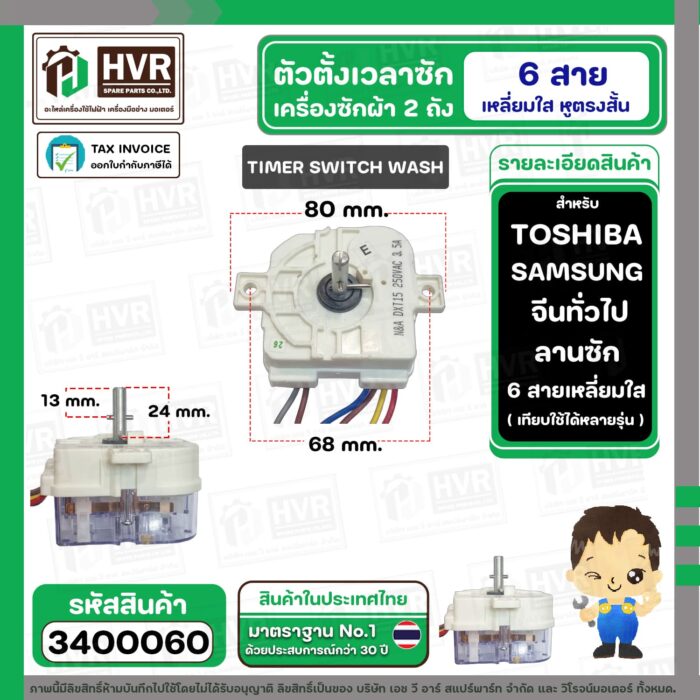 ———————— >> รายละเอียดสินค้า <> ** อะไหล่คุณภาพ ( High Quality Part ) ** <> ใช้สำหรับตั้งเวลาซักเครื่องซักผ้า ( #ลานซักผ้า,#นาฬิกาซักผ้า,#สวิทช์ตั้งเวลาซัก,#ตัวบิดตั้งเวลาซัก)