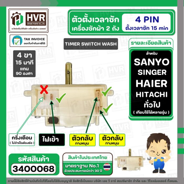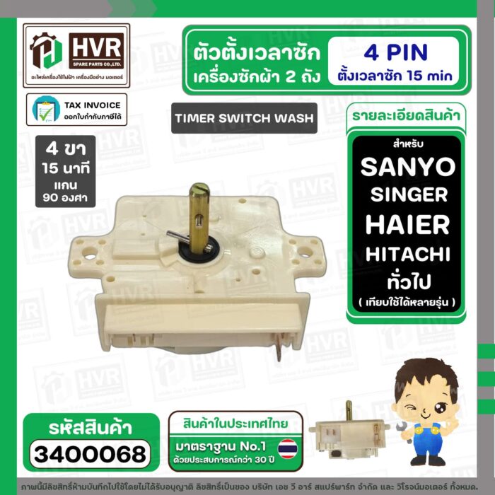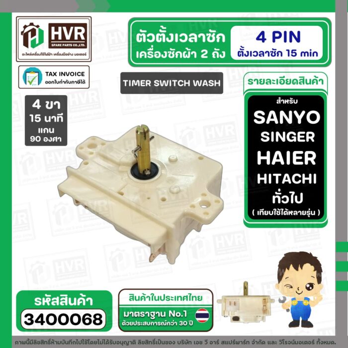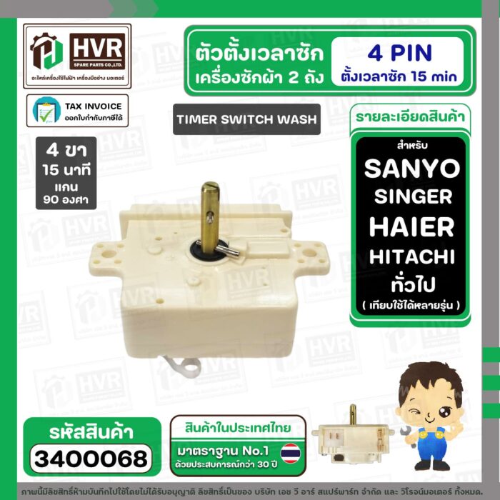 ลานซักเครื่องซักผ้า TOSHIBA , HAIER , SANYO , SINGER ( 4 PIN 15 นาที แทน 3 PON ได้เลย ) ( ขาว ) ( สลักสูง ) # DXT-15 #3400068