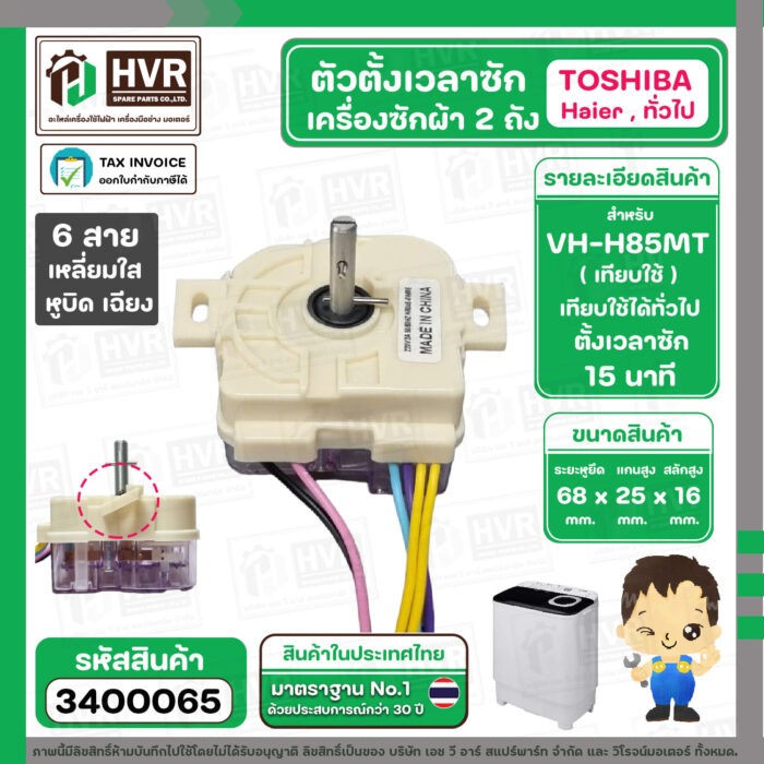 ลานซัก เครื่องซักผ้า TOSHIBA VH-H85MT , ทั่วไป ( 6 สายเหลี่ยมใส ) ( แกนสั้น หูบิด ) ( ตั้งเวลาซัก 15 นาที ) ( HR045-6WRE ) #3400065