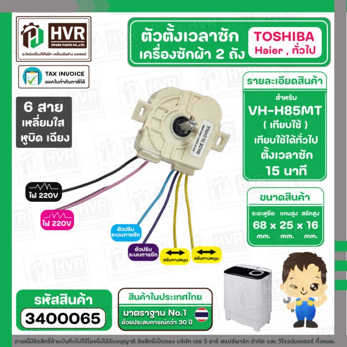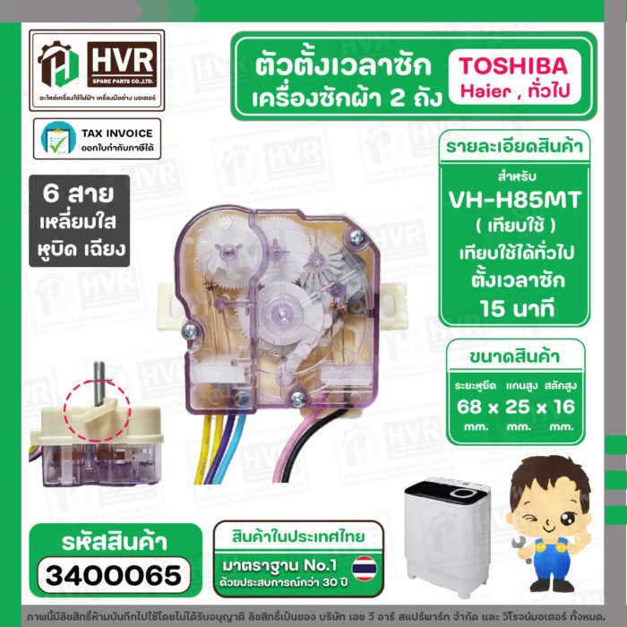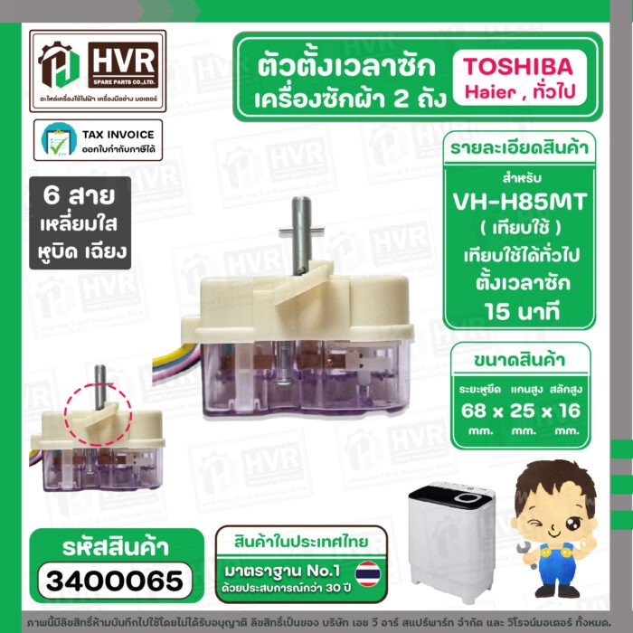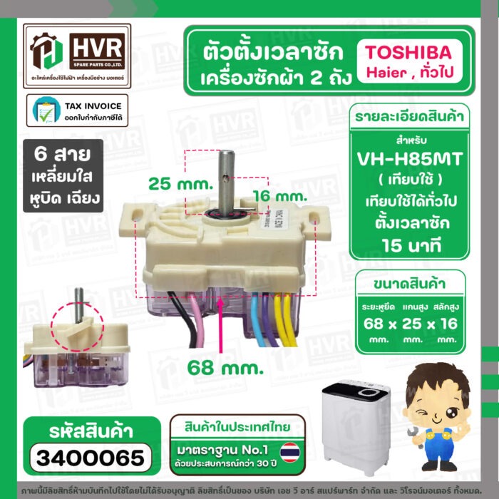 ลานซัก เครื่องซักผ้า TOSHIBA VH-H85MT , HAIER ทั่วไป ( 6 สายเหลี่ยมใส ) ( แกนสั้น หูบิด ) ( ตั้งเวลาซัก 15 นาที ) #3400065