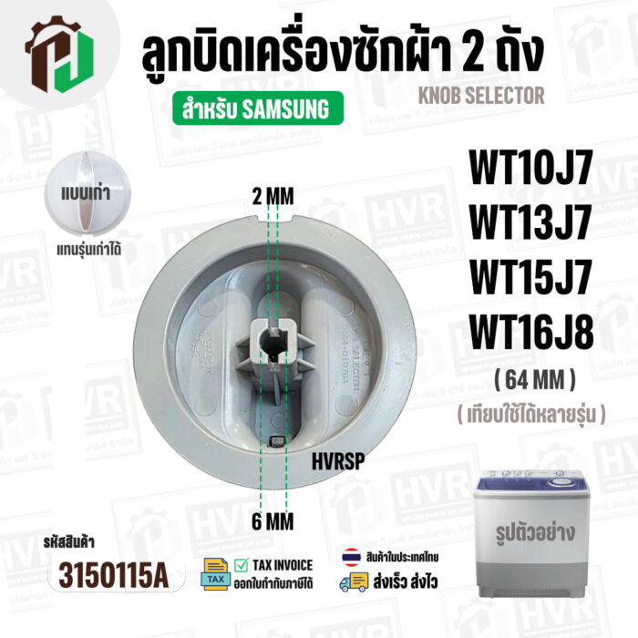 ลูกบิดเครื่องซักผ้า สำหรับ SAMSUNG WT10J7 ,WT12J7 , WT13J7 , WT15J7 , WT16J8 ( แท้ ) ( หัวมน ) ( 64 mm. ) #3150115A