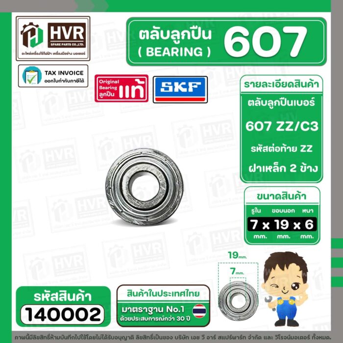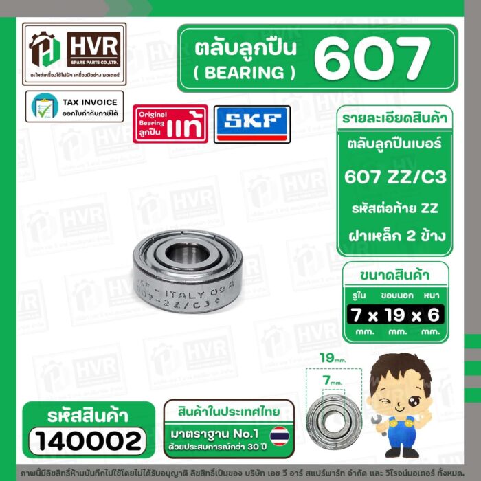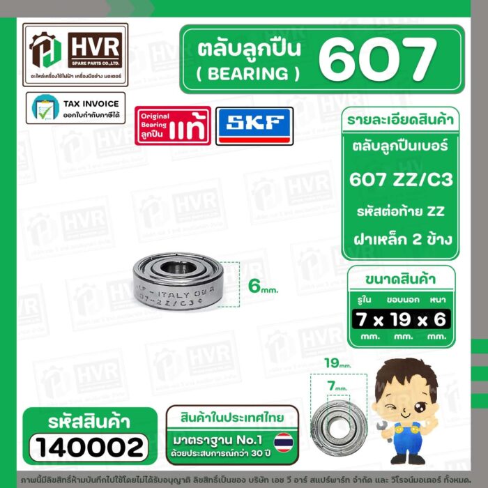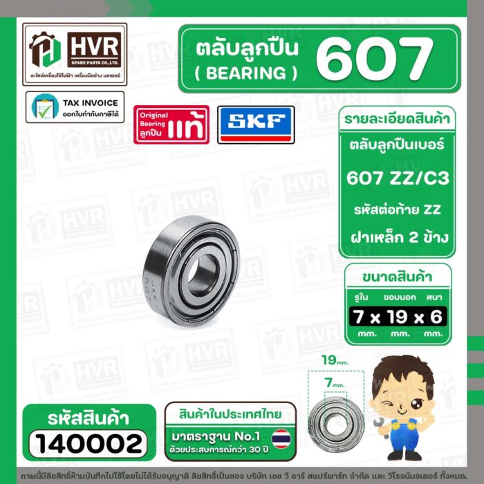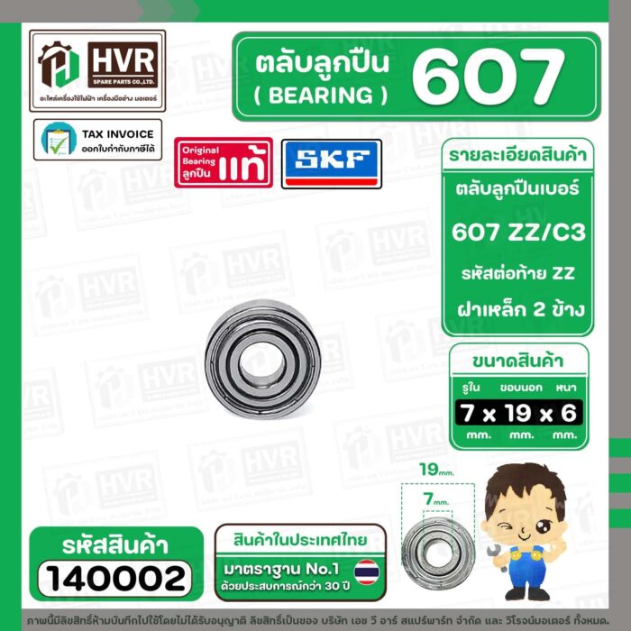 ลูกปืน 607 ZZ/C3 ( SKF ) ( รอบเร็ว ) ( 7 x 19 x 6 mm. ) ( ราคา / 1 ตลับ ) #140002
