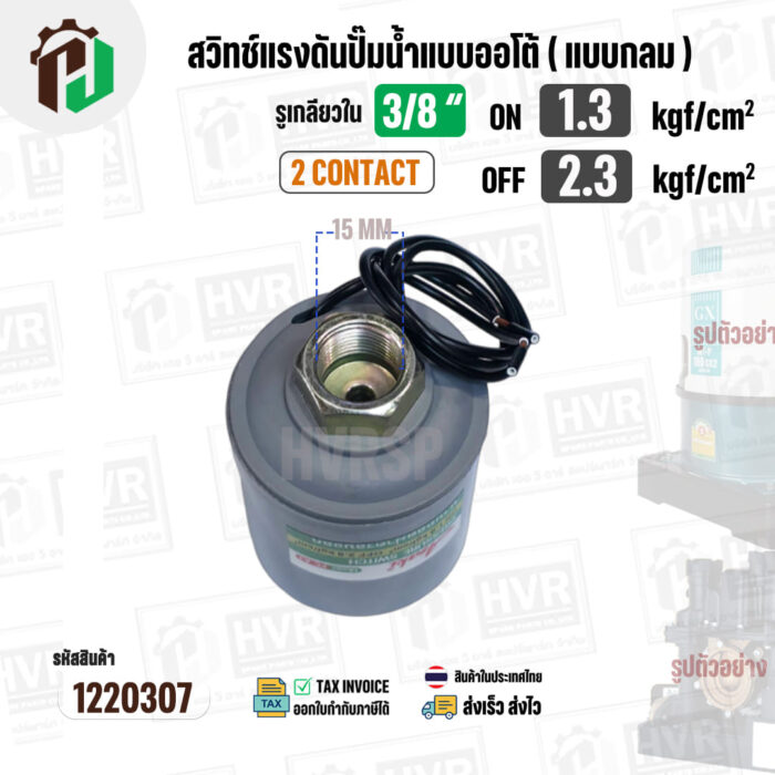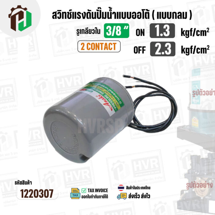 สวิทซ์ปั๊มน้ำออโต้ ( แบบกลม ) ON 1.3 kgf/cm2 / OFF 2.3 kgf/cm2 รูเกลียวใน 3/8″ ( 2 Contact ) #1220307