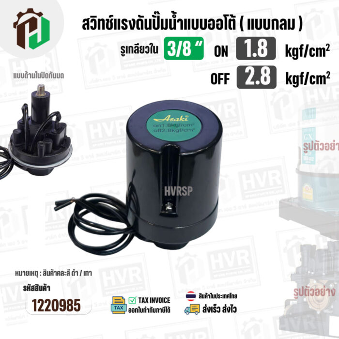 สวิทซ์ปั้มน้ำออโต้ ( แบบกลม ) ON 1.8 / OFF 2.8 รูเกลียวใน 3/8″ ( 2 Contact ) ( Asaki ) (ดำ ) #1220985