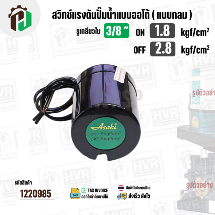 “สวิทซ์ปั๊มน้ำออโต้ ( แบบกลม ) ON 1.8 / OFF 2.8 รูเกลียวใน 3/8″” ( 2 Contact ) ( Asaki ) (แบบด้านหุ้มกันมด ) #1220985