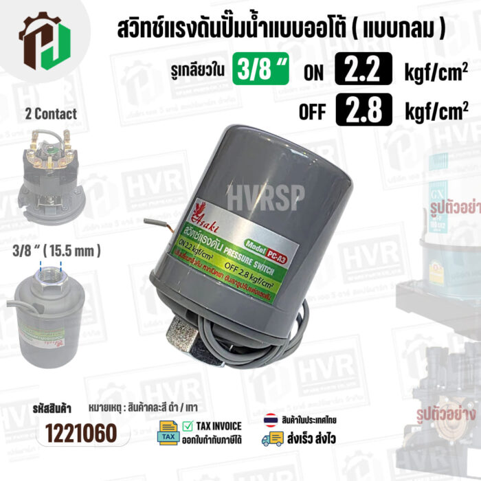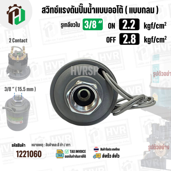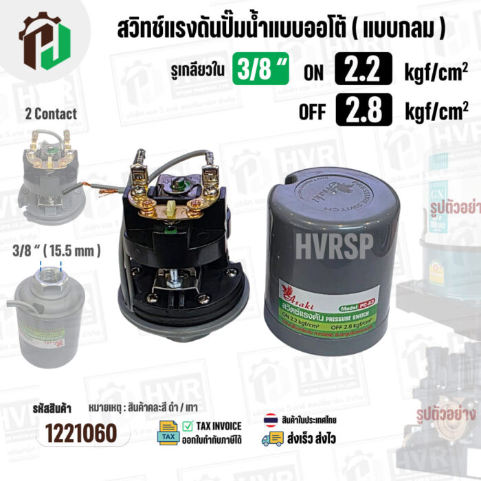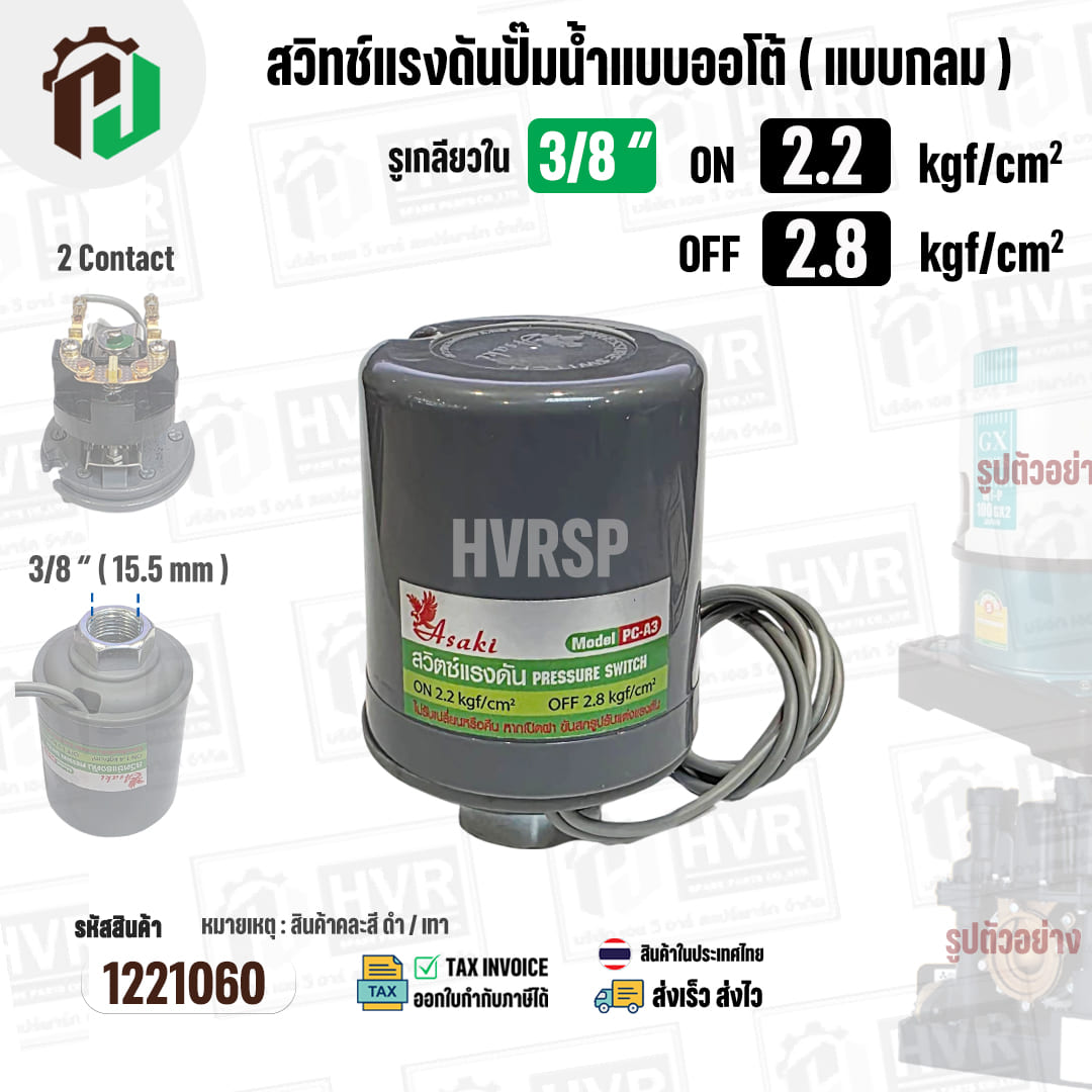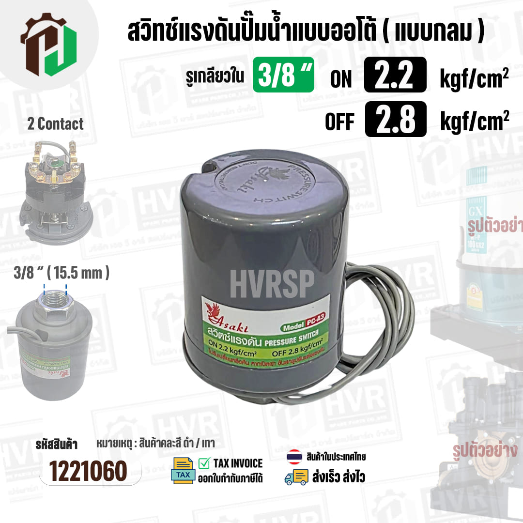 สวิทซ์ปั้มน้ำออโต้ ( แบบกลม ) ON 2.2 kgf/cm2 / OFF 2.8 kgf/cm2 รูเกลียวใน 3/8″ ( 2 Contact ) ( Asaki ) #M #1221060