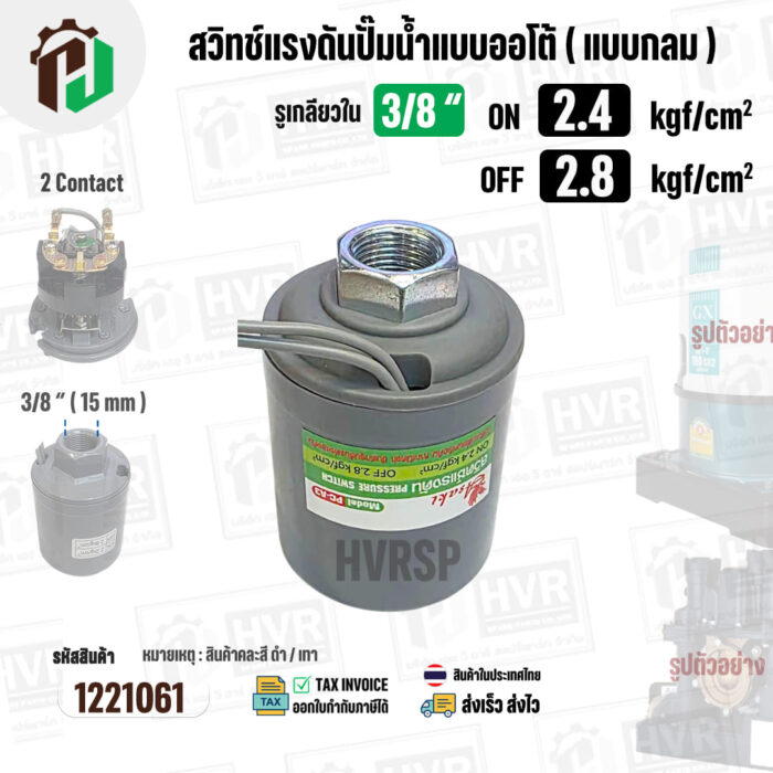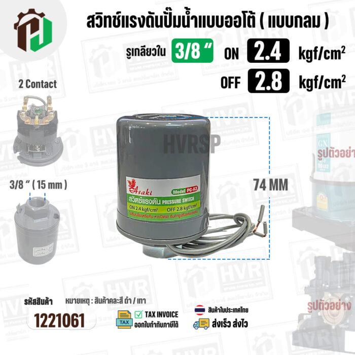 สวิทซ์ปั้มน้ำออโต้ ( แบบกลม ) ON 2.4 kgf/cm2 / OFF 2.8 kgf/cm2 รูเกลียวใน 3/8″” ( 2 Contact ) ( Asaki ) #M #1221061