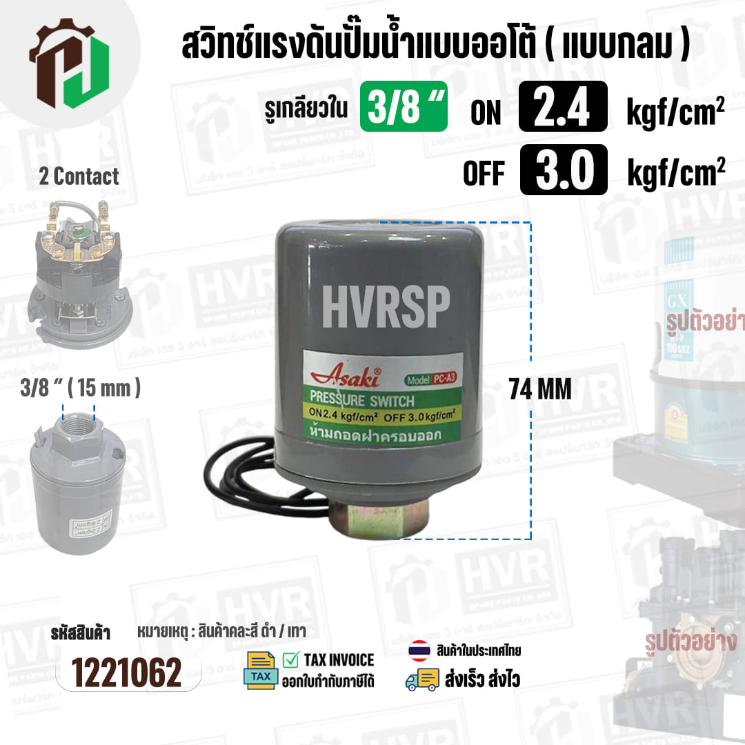 สวิทซ์ปั้มน้ำออโต้ ( แบบกลม ) ON 2.4 kgf/cm2 / OFF 3.0 kgf/cm2 รูเกลียวใน 3/8″” ( 2 Contact ) ( Asaki ) #M #1221062