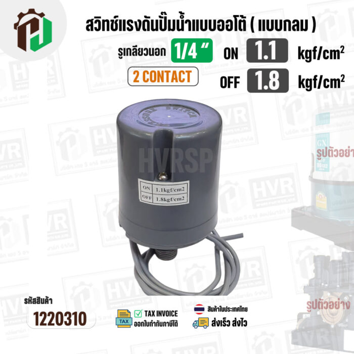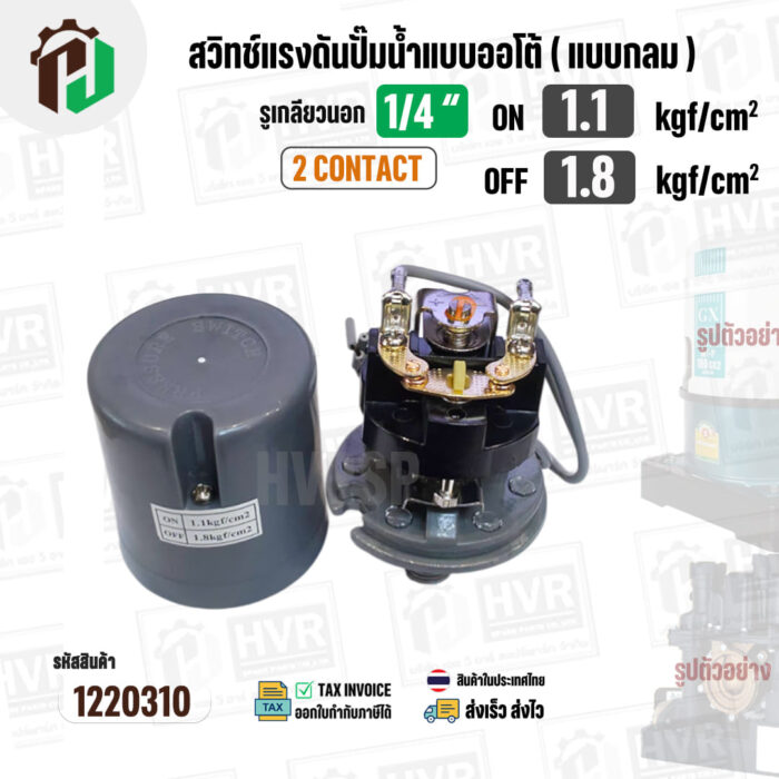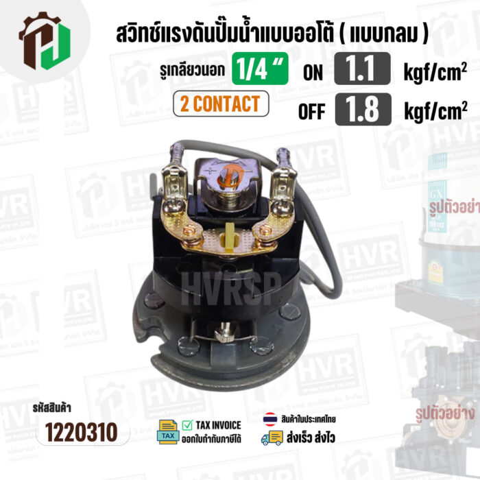 สวิทซ์ปั้มน้ำออโต้ ( แบบกลม ) ON 1.1 kgf/cm2 / OFF 1.8 kgf/cm2 เกลียวนอก 1/4 ” ( 2 Contact ) ( CORO ) #1220310